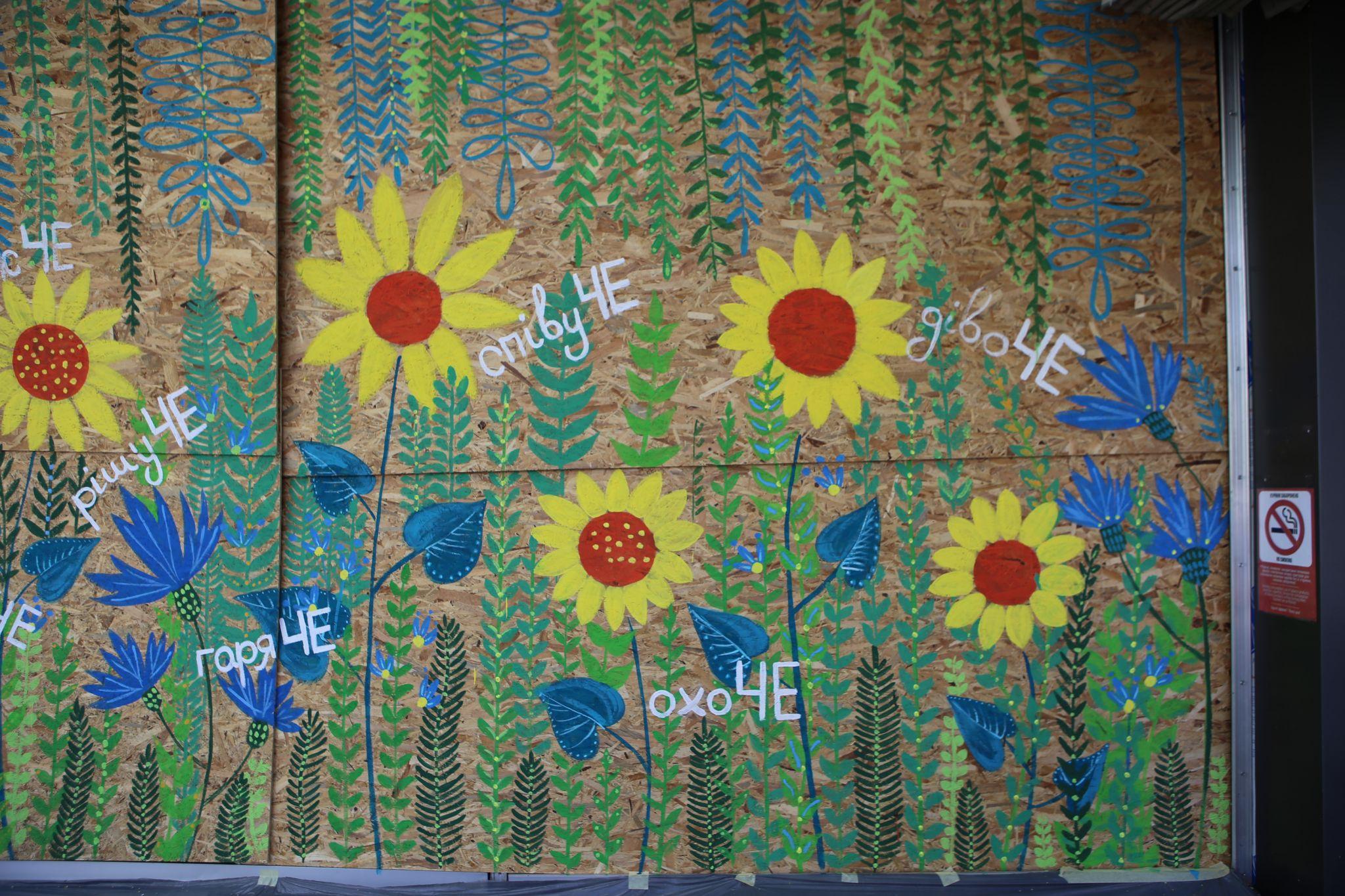 Крім соняхів та волошок, на стінах можна побачити чимало різноманітних слів, що в них підкреслено букви «ЧЕ» — від назви піцерії. Марина говорить, що в кожне зі слів закладені емоції, які під час війни асоціюються у нас із чимось позитивним: ЧЕрвона калина, доЧЕкаємось, співуЧЕ, квітуЧЕ, дівоЧЕ, ЧЕсть, ближЧЕ тощо.