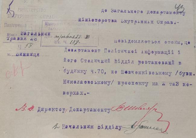 Історик і керівник Музею Вінниці Олександр Федоришен поділився унікальним архівним документом — листом Міністерства внутрішніх справ УНР. У ньому зазначено, що центральна вулиця Вінниці у травні 1920 року офіційно називалася Шевченківський проспект.