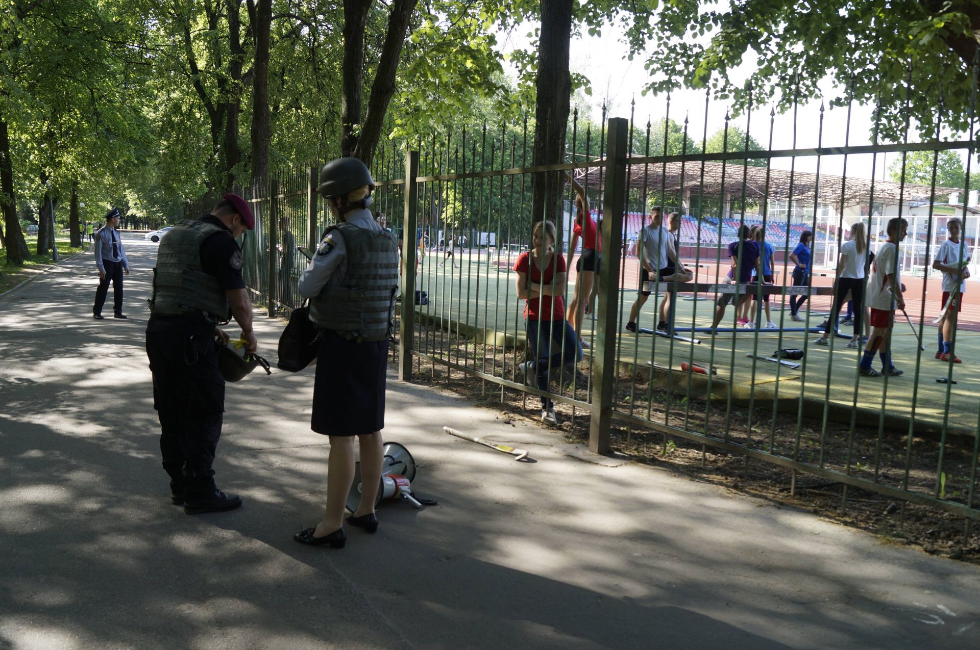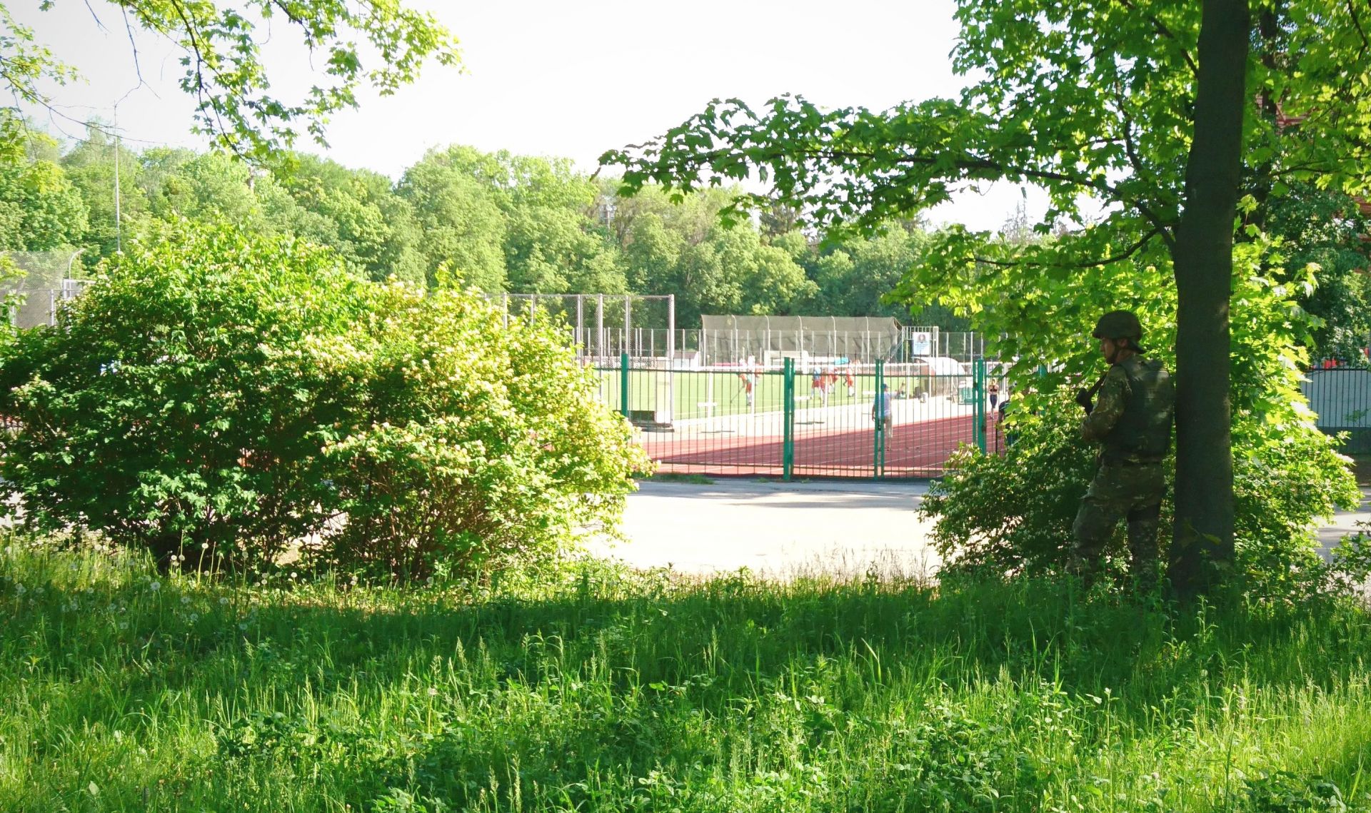 На стадіоні, що розміщений посеред парку продовжували знаходитися діти та підлітки. Нікого не випускали та не пропускали всередину. Деякі, судячи з постів у фейсбуці, почали панікувати. Вінницька модель Катерина Просянникова виклала пост, де пише, що її дитина попала під обстріли.