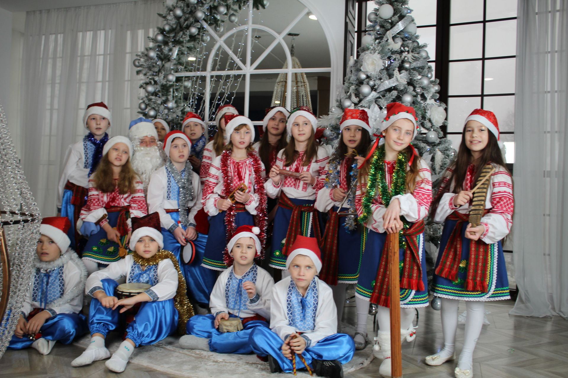 - Діти молодших класів заспівали «Щедрика» в чотири голоса, так як бачив це Микола Леонтович