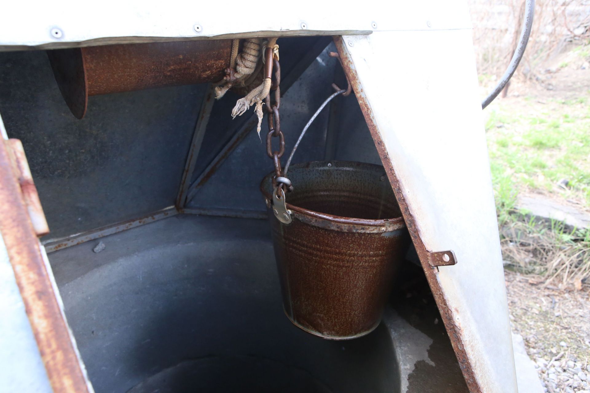 Він продемонстрував «відремонтований» колодязь: свердловина накрита жерстяним коробом, усередині іржаве відро, яким мешканці приватного сектору набирають воду.