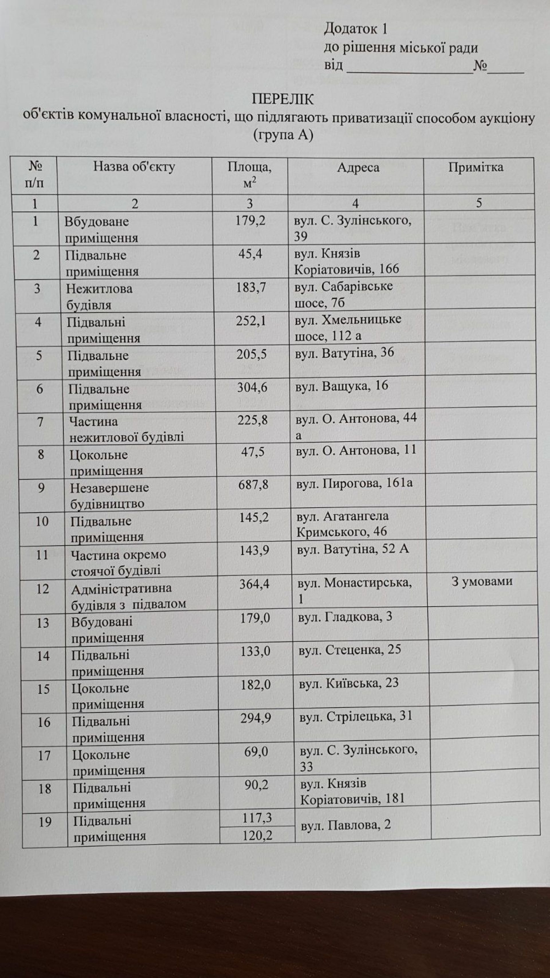 На сайті міськради опублікували повідомлення, що в червні збираються продати нежитлові приміщення будинків, які є в комунальній власності та роками не використовувалися. Усього 29 об’єктів, серед яких є технічні приміщення, в яких колись були котельні, господарські об’єкти та окремо стоячі будівлі, якими управляли ЖЕКи ще за часів СРСР.