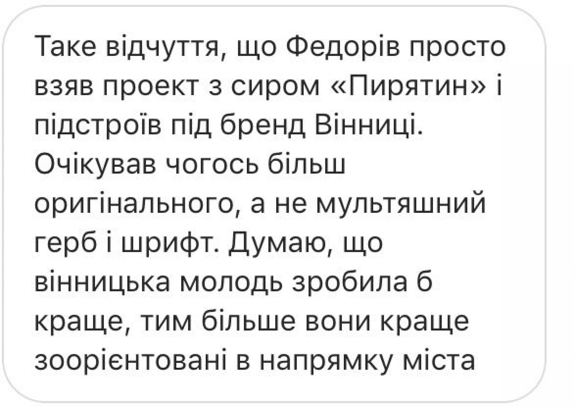 Андрій Федорів одразу наголосив, що негативне сприйняття у будь-якому проекті завжди буде присутнє. Незалежно від того, чи бренд розробляється для «Нової пошти», магазину «Розетка» чи міста Вінниця.