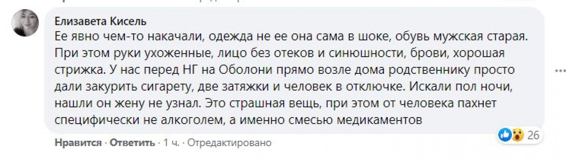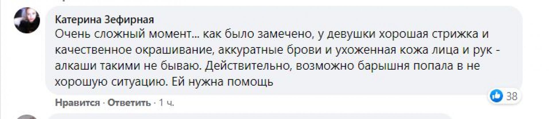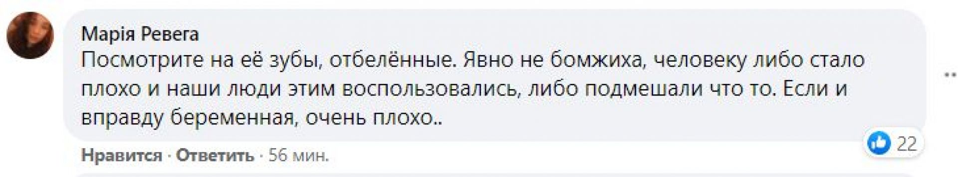У коментарях під дописом люди пишуть, що жінка, скоріш за все, потрапила в біду. Відмічають, що вона має доглянутий вигляд і не схожа на алкоголічку. Додаємо декілька таких коментарів: