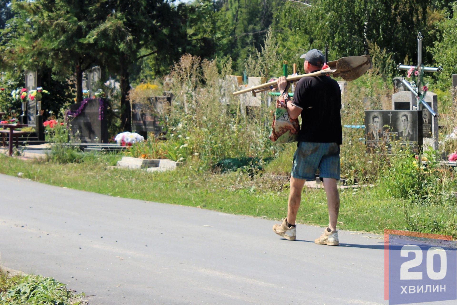 Далі, головний на кладовищі просить одного із землекопів показати, де зараз ховають мерців. Цим копачем є вінничанин Валерій Лушников, що тут працює вже 15 років.