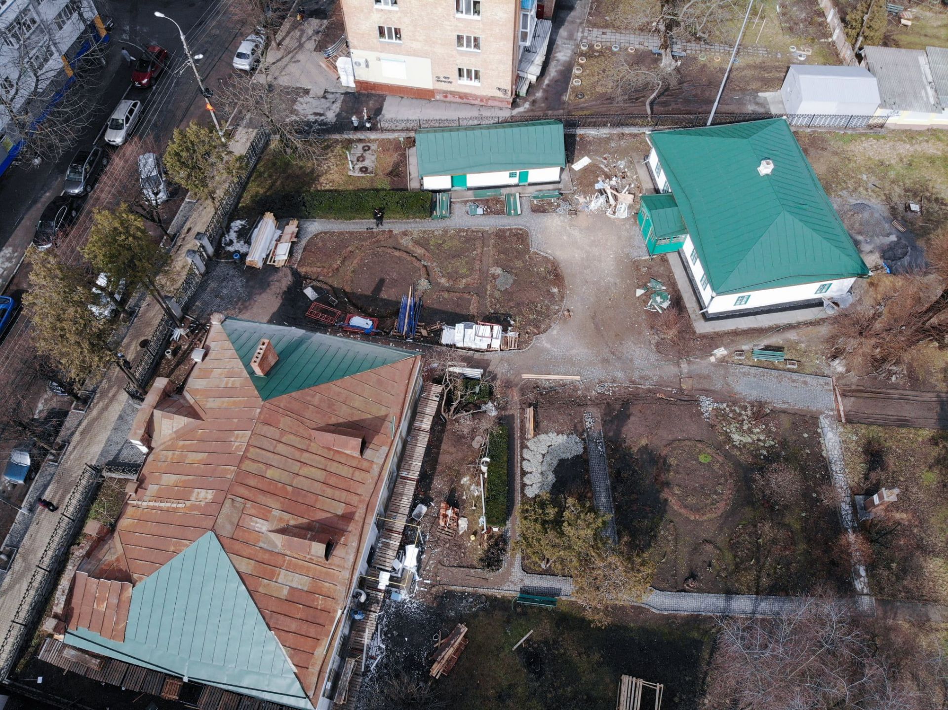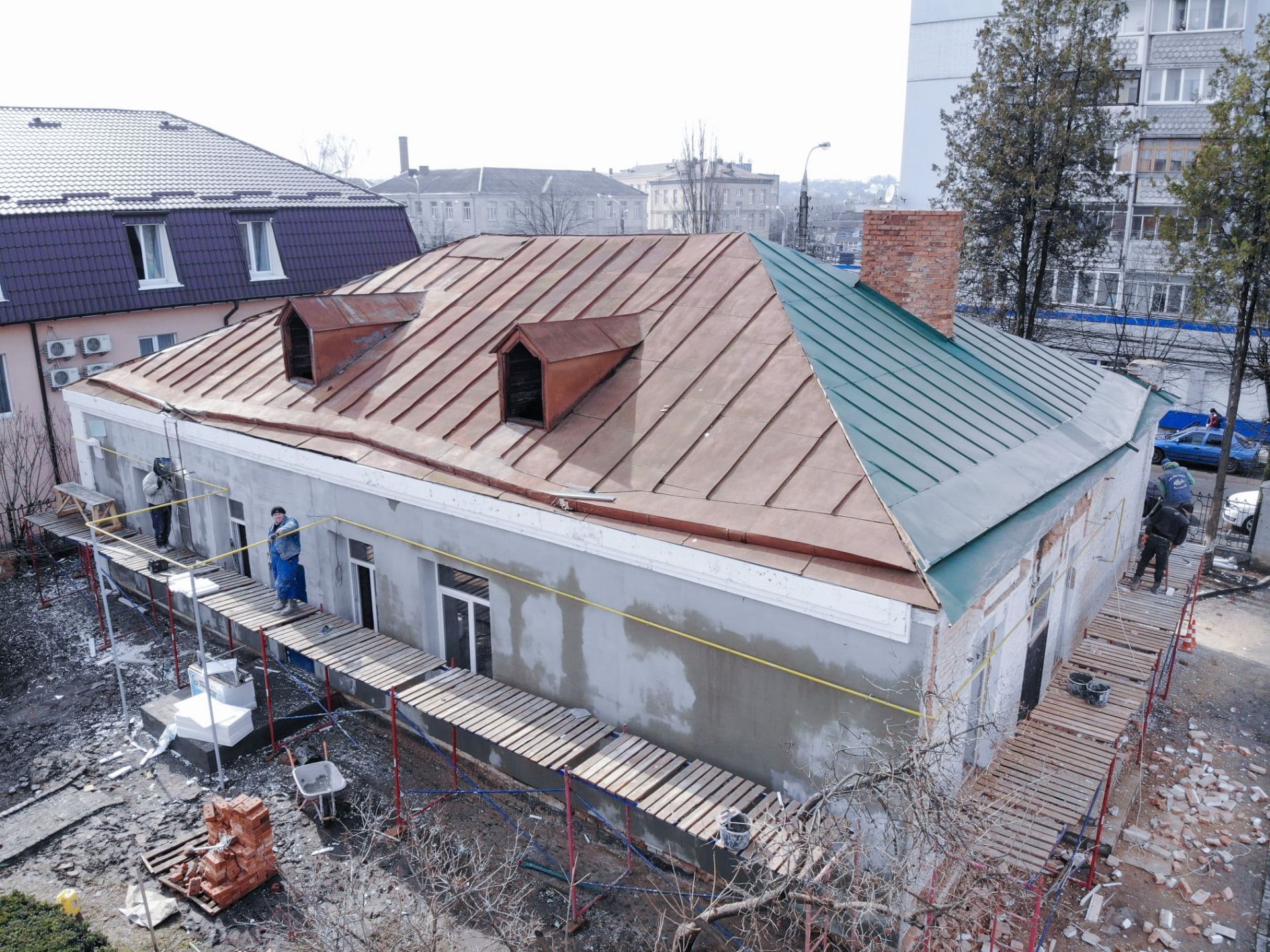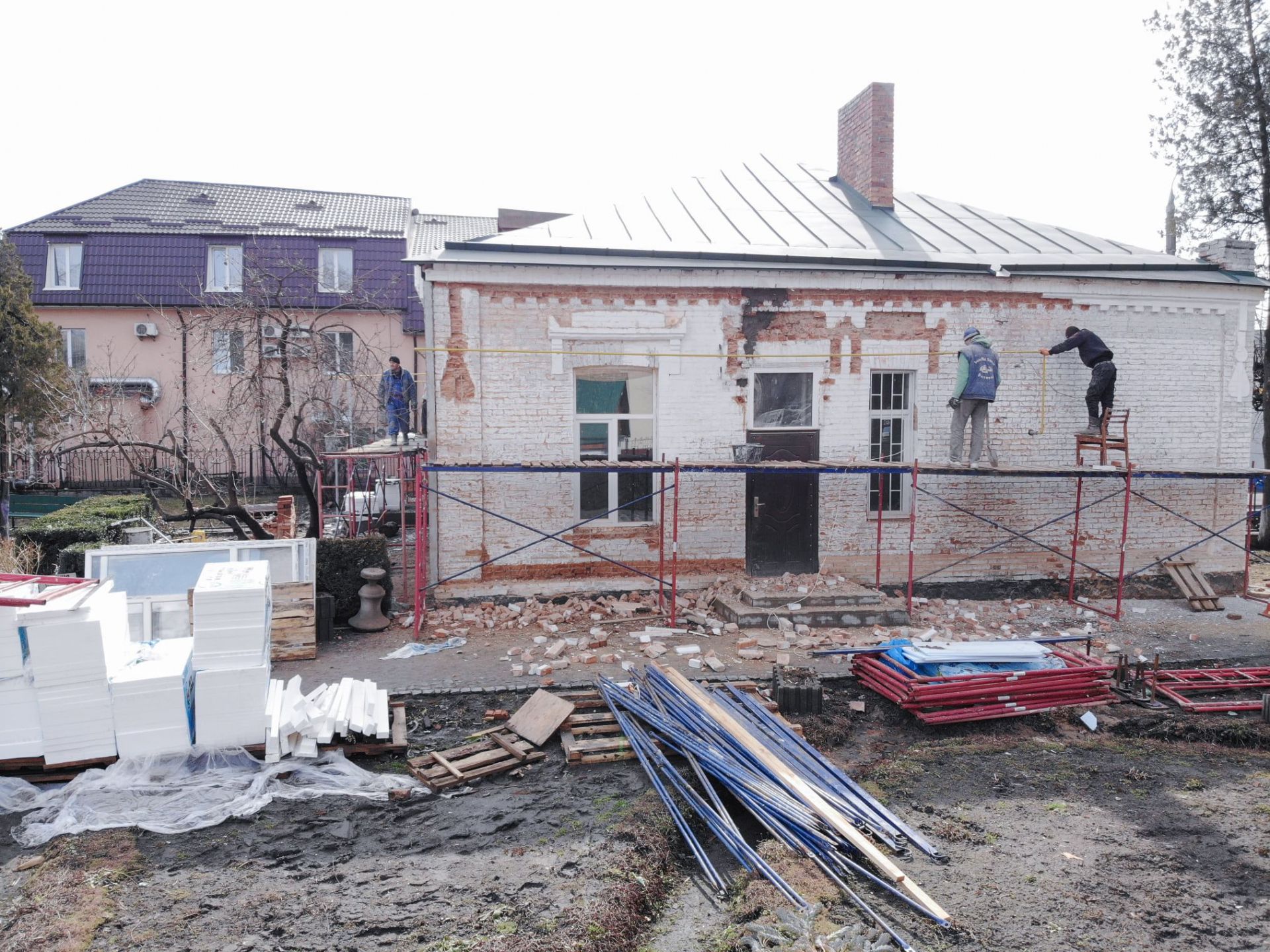 «Будівельна бригада вже частково перекрила та підсилила дах, зробила гідроізоляцію та бетонну стяжку підлоги у самому приміщенні. Замінені системи водопостачання та опалення, встановлені нові енергозберігаючі вікна та вхідні двері. Стару веранду демонтували та підготували фундамент під нову споруду. Окрім того, виконуються внутрішні та електромонтажні роботи, — йдеться у повідомленні. — В адміністративному приміщенні не лише працюють наукові співробітники закладу, тут традиційно відбуваються виставки, мистецькі презентації та заходи. А також є фондосховище, в якому зберігається понад 10 тисяч музейних предметів, серед яких і цінні меморіальні експонати».