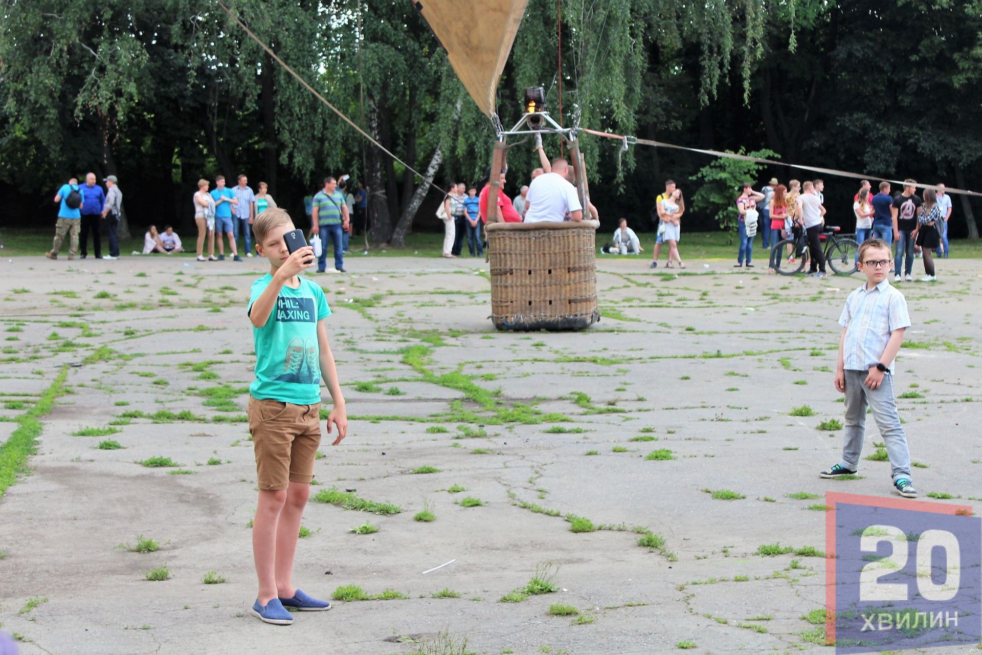 Вінничани, що зібралися навколо, не сильно засмутилися. Навпаки, почали масово робити «селфі» на фоні кулі. Організатори зі сцени «Холіфесту», що проходить поряд, сказали, що вітер заспокоїться до 8-ої години вечора. Тому якщо ви ще не в парку, то є ще можливість приїхати та покататися на повітряній кулі.