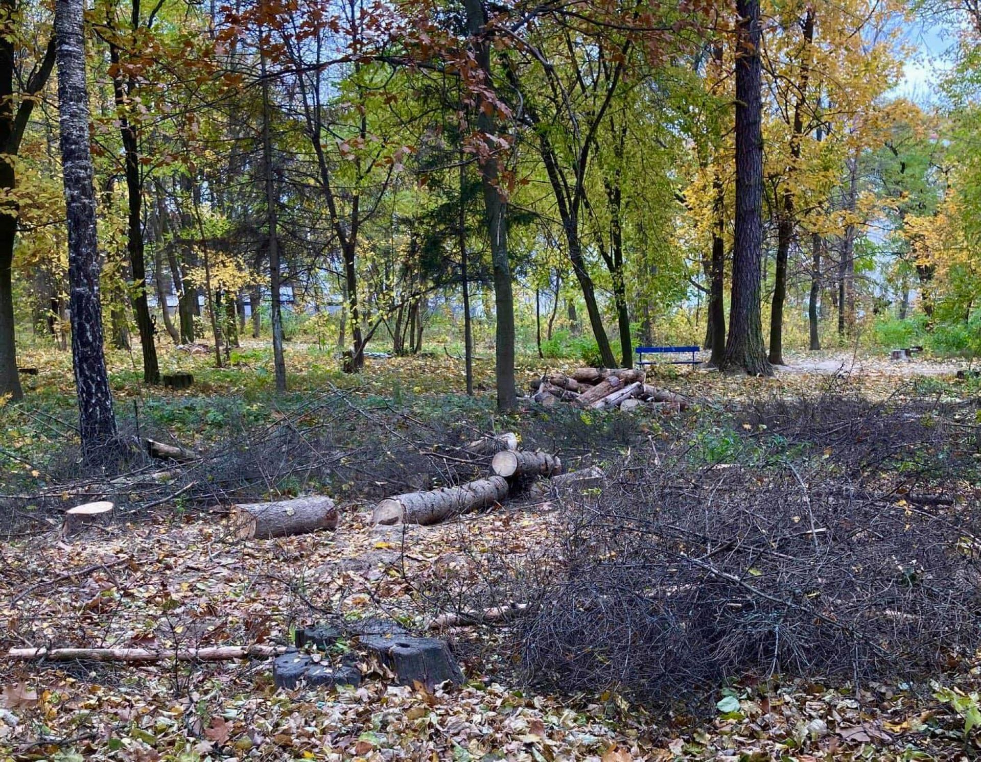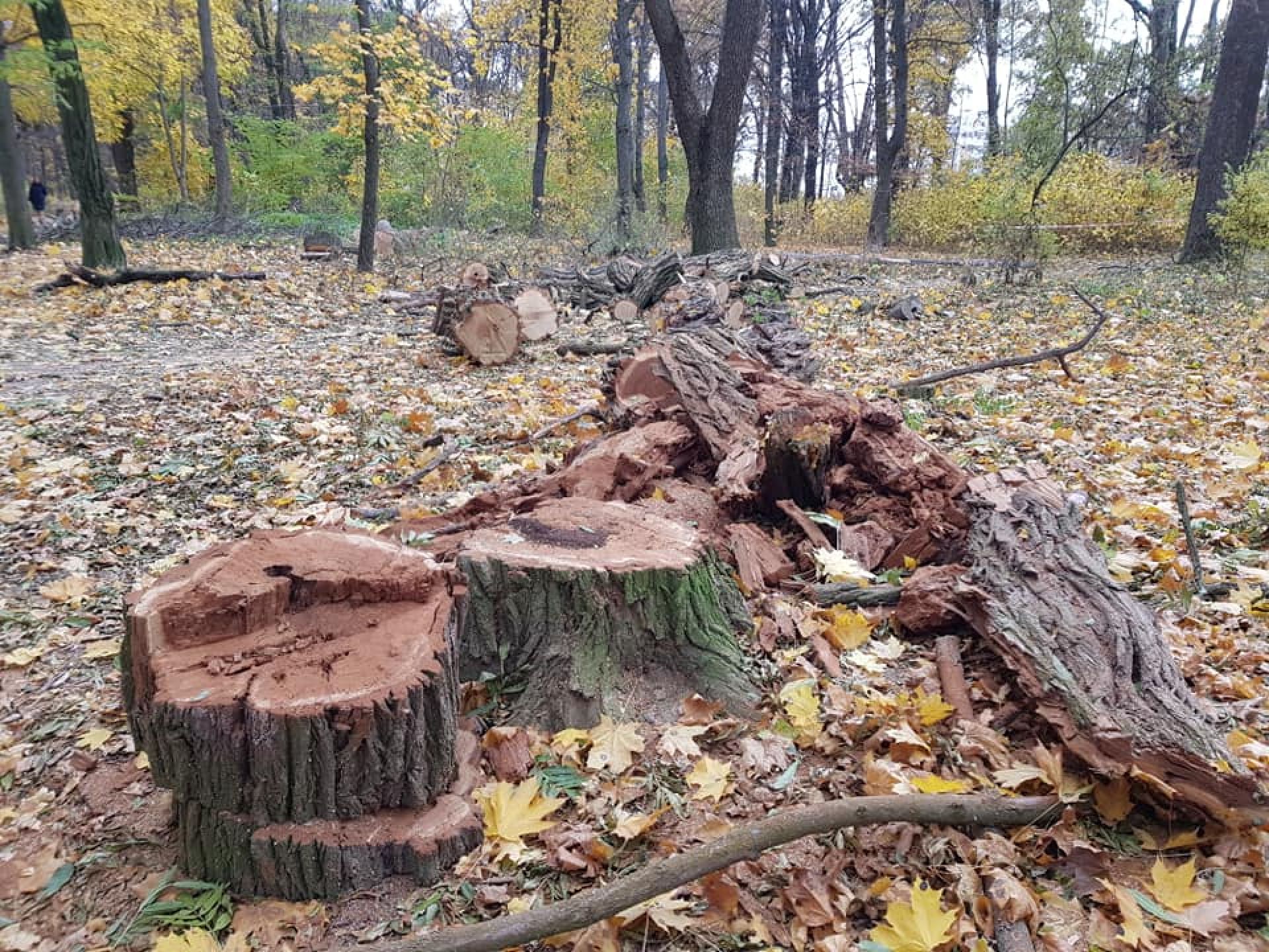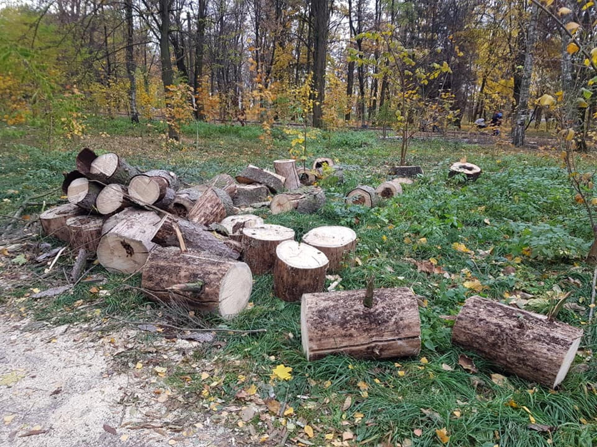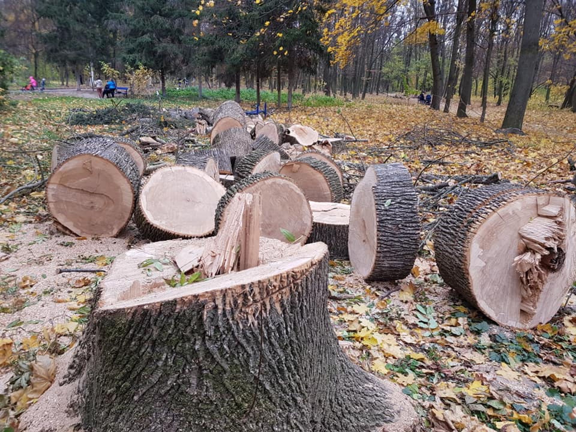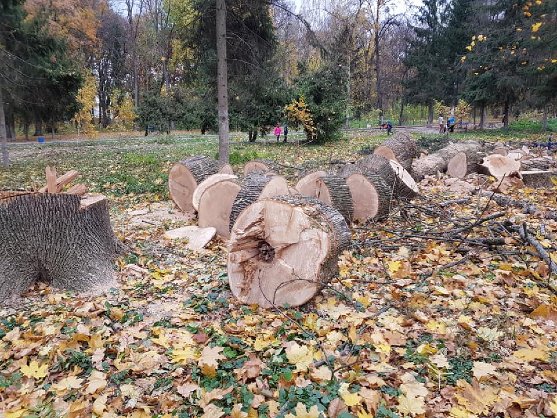 — Вперше за багато років в парку ім.О.І. Ющенка іде достатньо інтенсивна рубка дерев. Якщо це санітарна рубка і видаляють хворі та сухі дерева, то це позитивно. А якщо ні та іде підготовка дільниці під якусь забудову? Відповідь можуть надати фахівці. Бажано знайти пояснення, — написав чоловік та виклав фото порізаних дерев.
