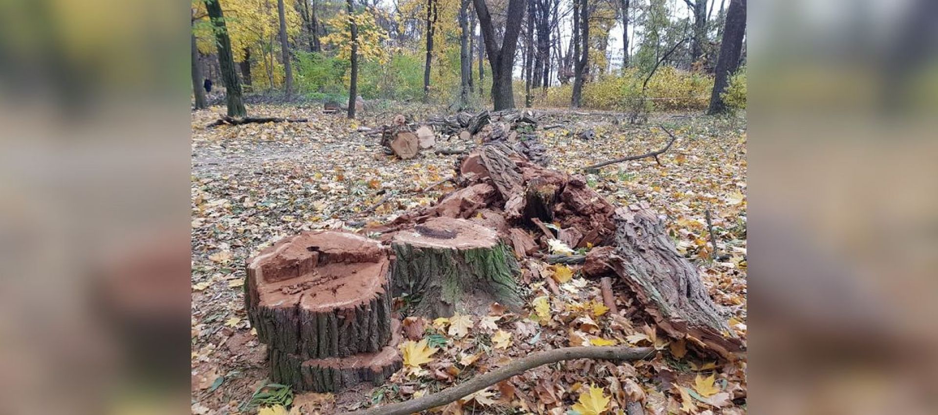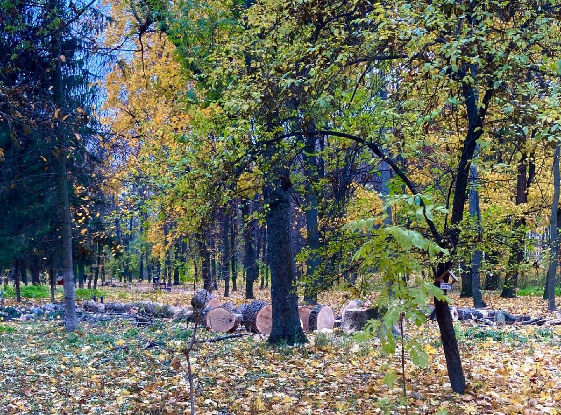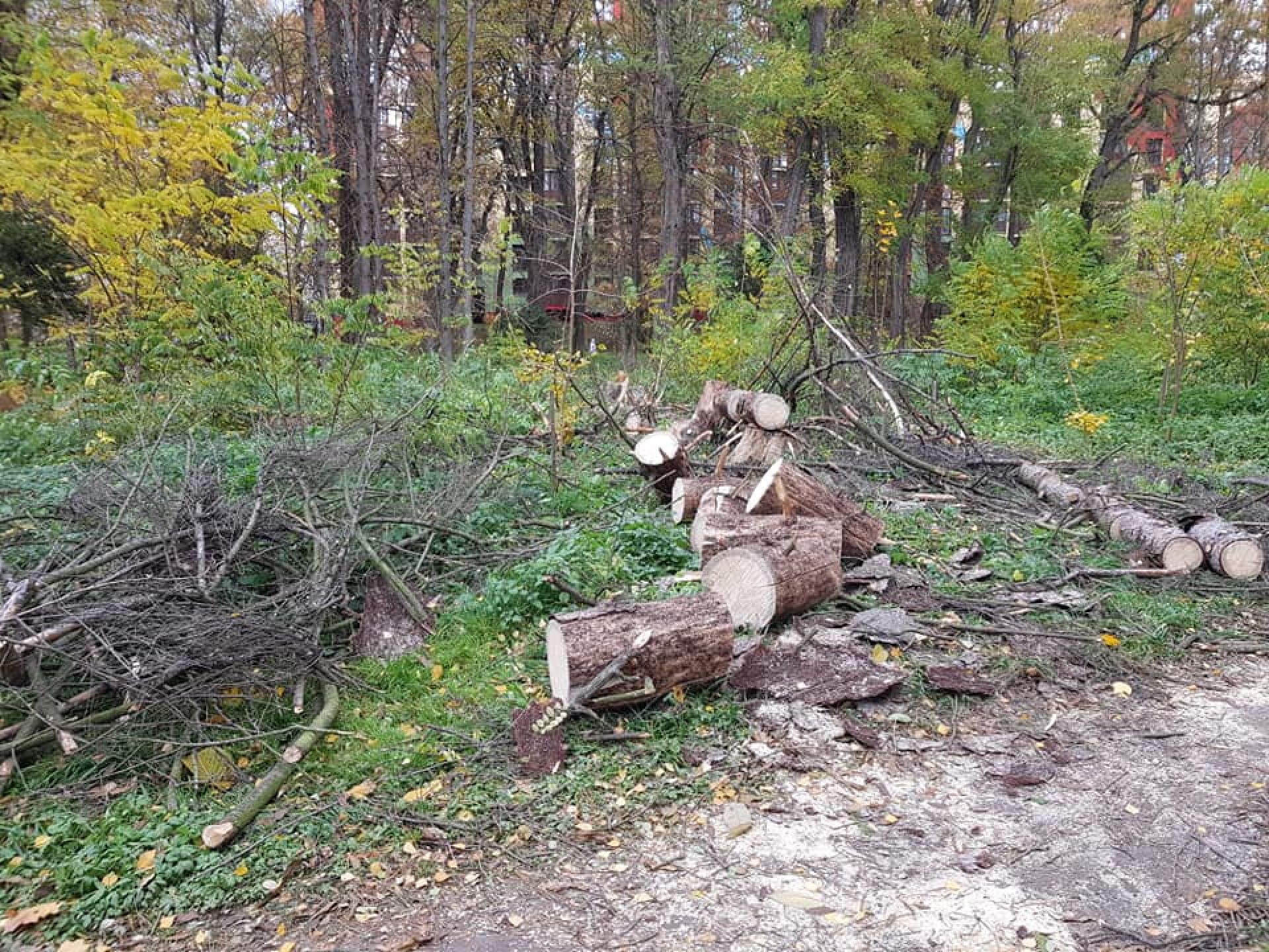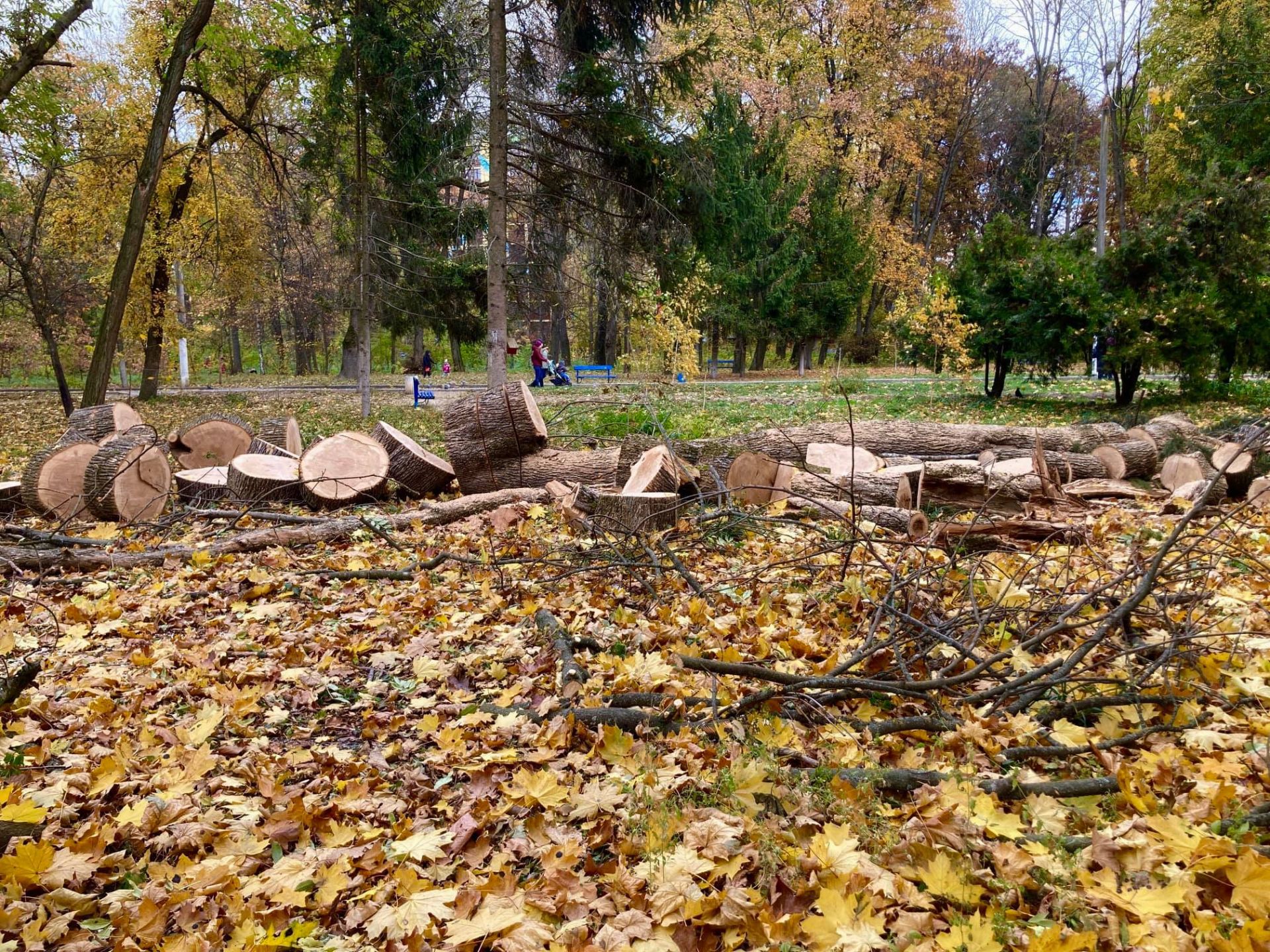 У парку Ющенка зрізають дерева. Що це — санітарна рубка чи готують ділянку під забудову?