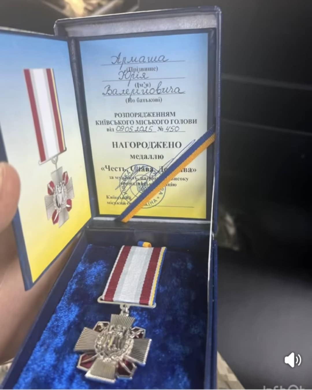 - Начальника медичної служби Юрія Армаша з Вінниччини нагородили медаллю «Честь.Слава. Держава». Нагородження відбулося під час пленарного засідання V сесії Київської міської ради. Нагороду захисникові особисто вручив мер Києва Віталій Кличко.