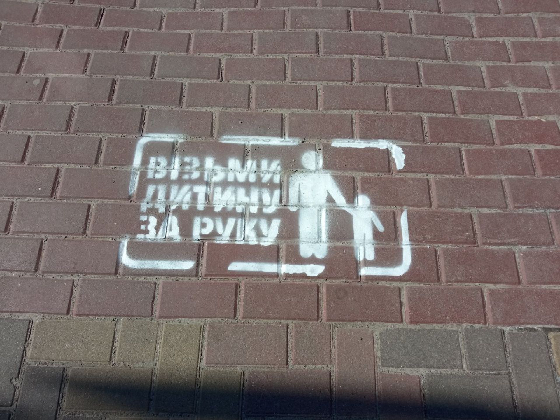 А ще на одному з переходів до новенького напису підійшов чоловік з маленькою дівчинкою. Тато став пояснювати донці, чому вона має тримати його за руку на переході — яскравий приклад того, що подібна соціальна ініціатива може бути дієвою.