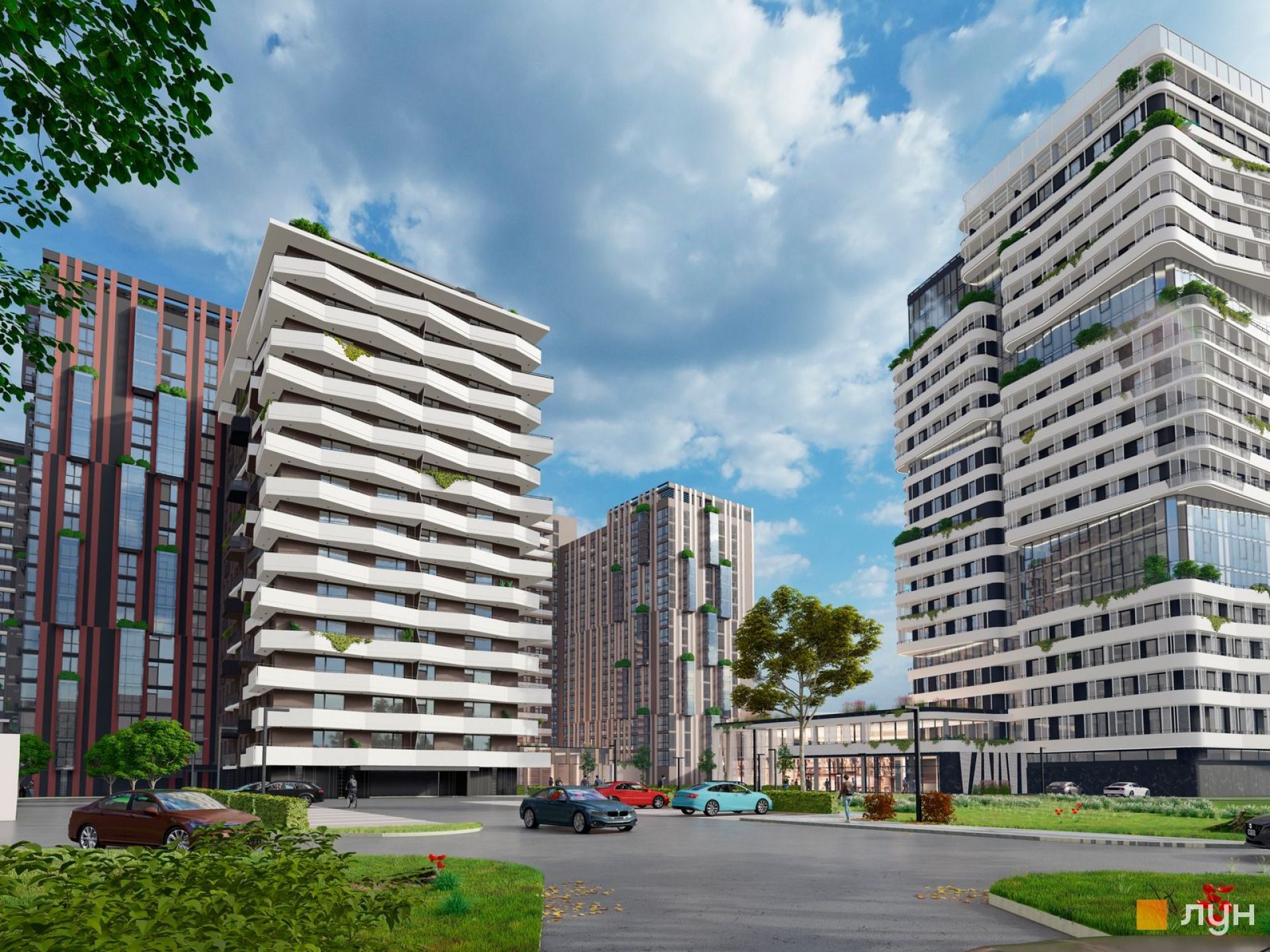 На цій ділянці планують звести 19 житлових будинків. Раніше, нагадаємо, чиновники говорили, що новобудови матимуть висотність від 14 поверхів, 2600 квартир та 1804 паркомісця. Втім, на сайті DOM.RIA.com, що на ньому розміщена інформація про продаж майбутніх квартир, вказано інша інформація: висотність стартуватиме від 15 поверхів, загальна кількість квартир складе 3009, а паркомісць буде 2132. Гранично допустима висотність залишилася незмінною — 20 поверхів.