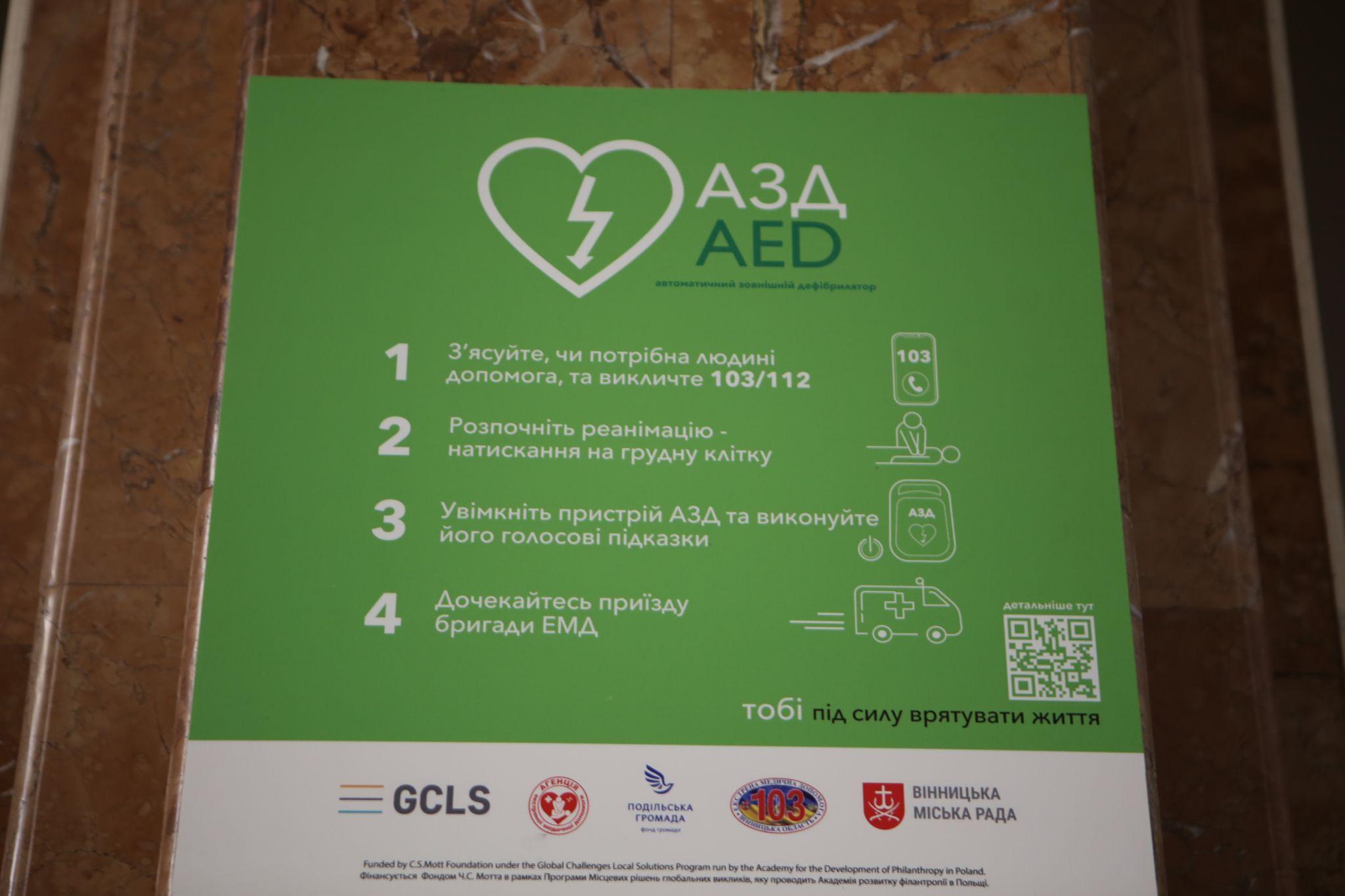 - У Вінниці проходить проєкт «АЗД рятує життя». У його рамках встановили шість автоматичних зовнішніх дефібриляторів у публічних місцях та навчили вінничан ними користуватися.
