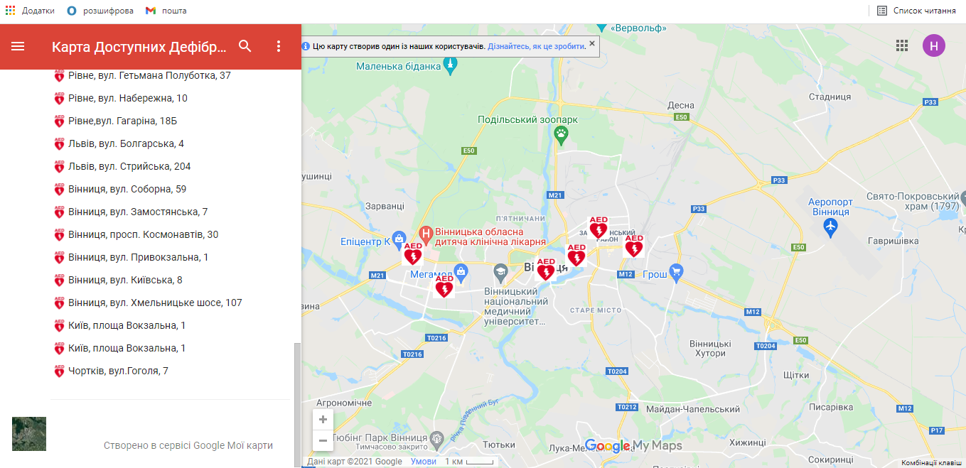 Додамо, що Вінниці відтепер є на карті доступних дефібриляторів України. Переглянути можна ТУТ.