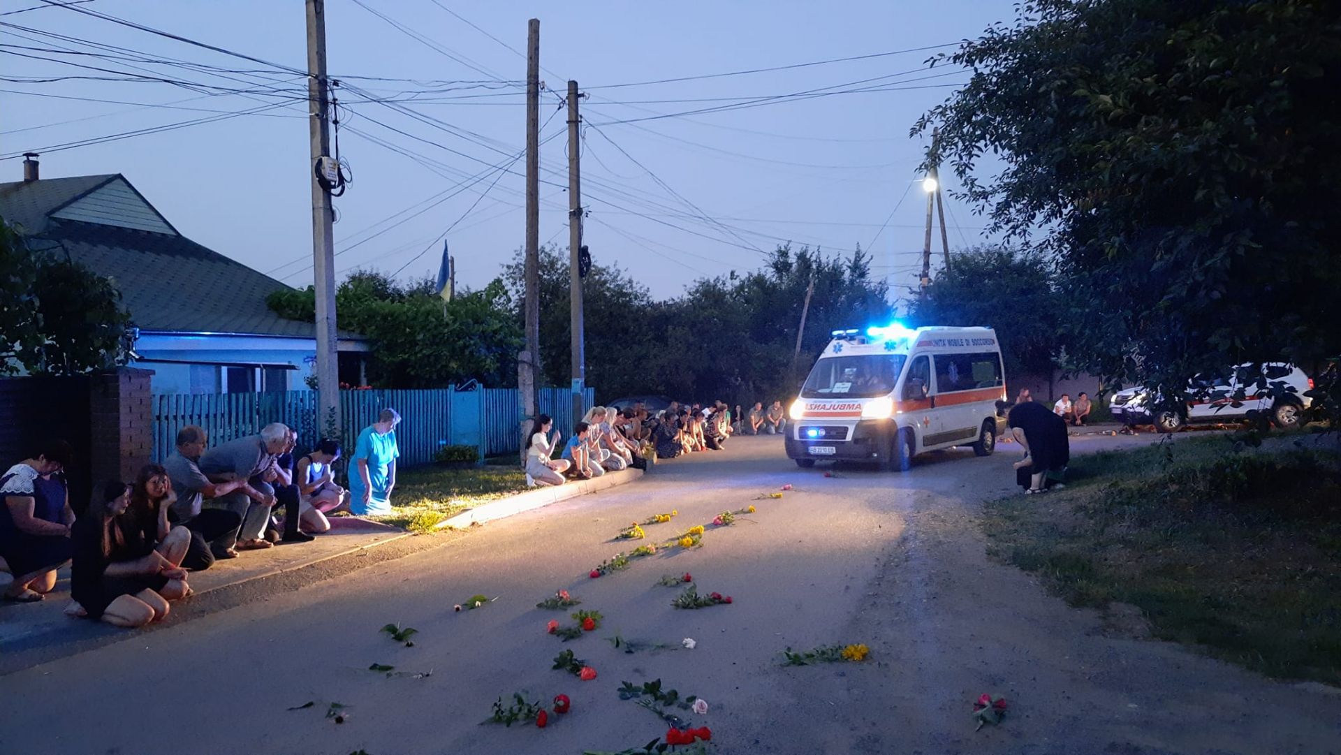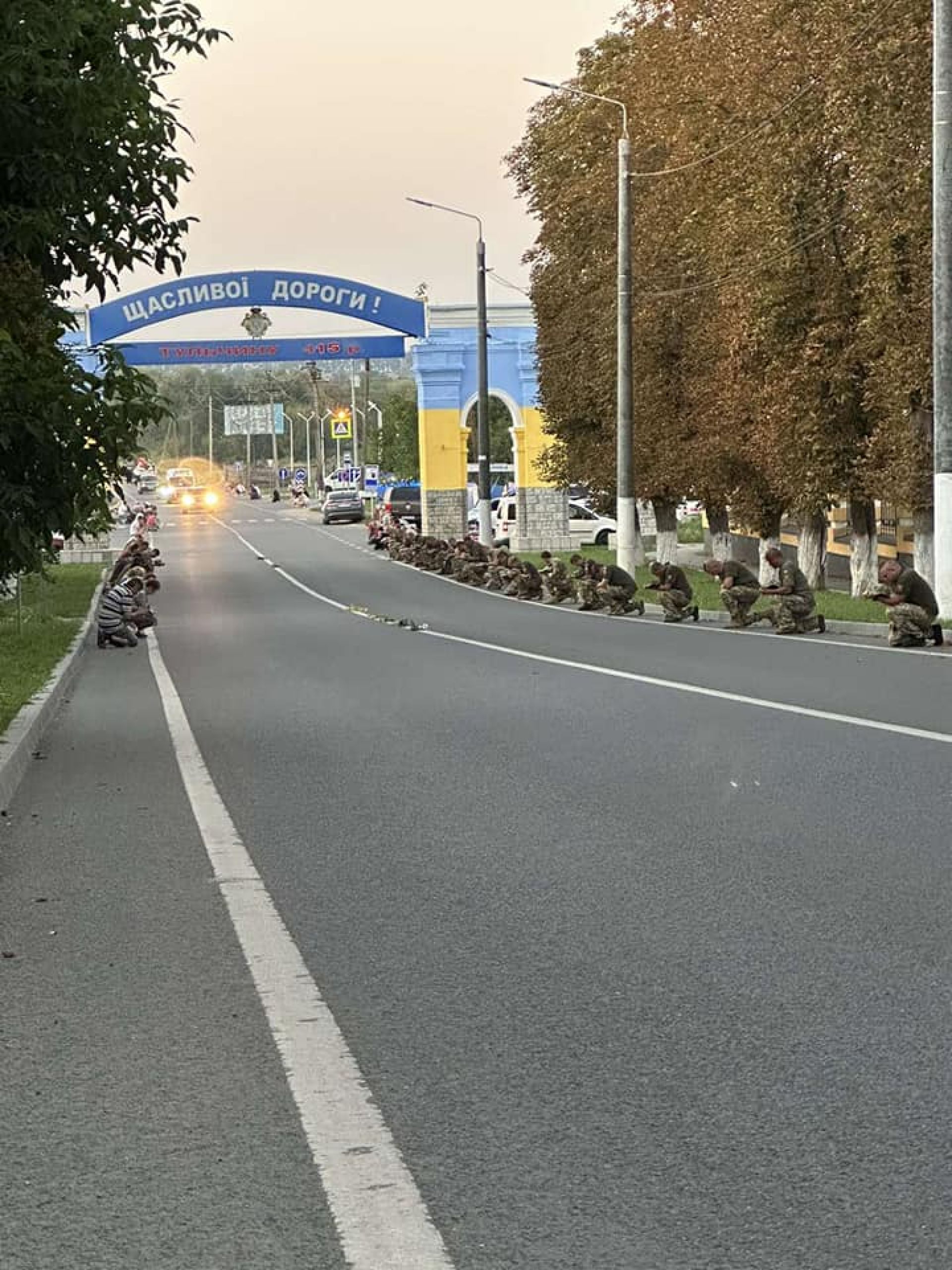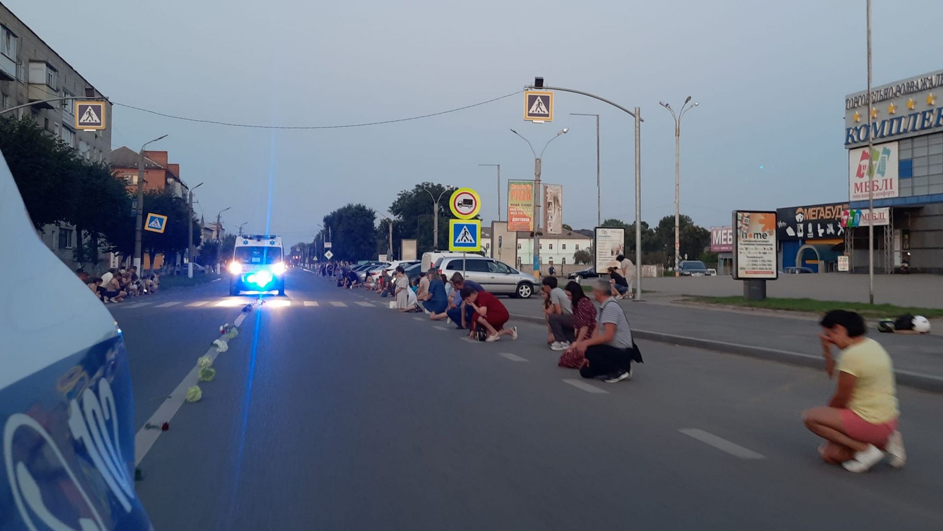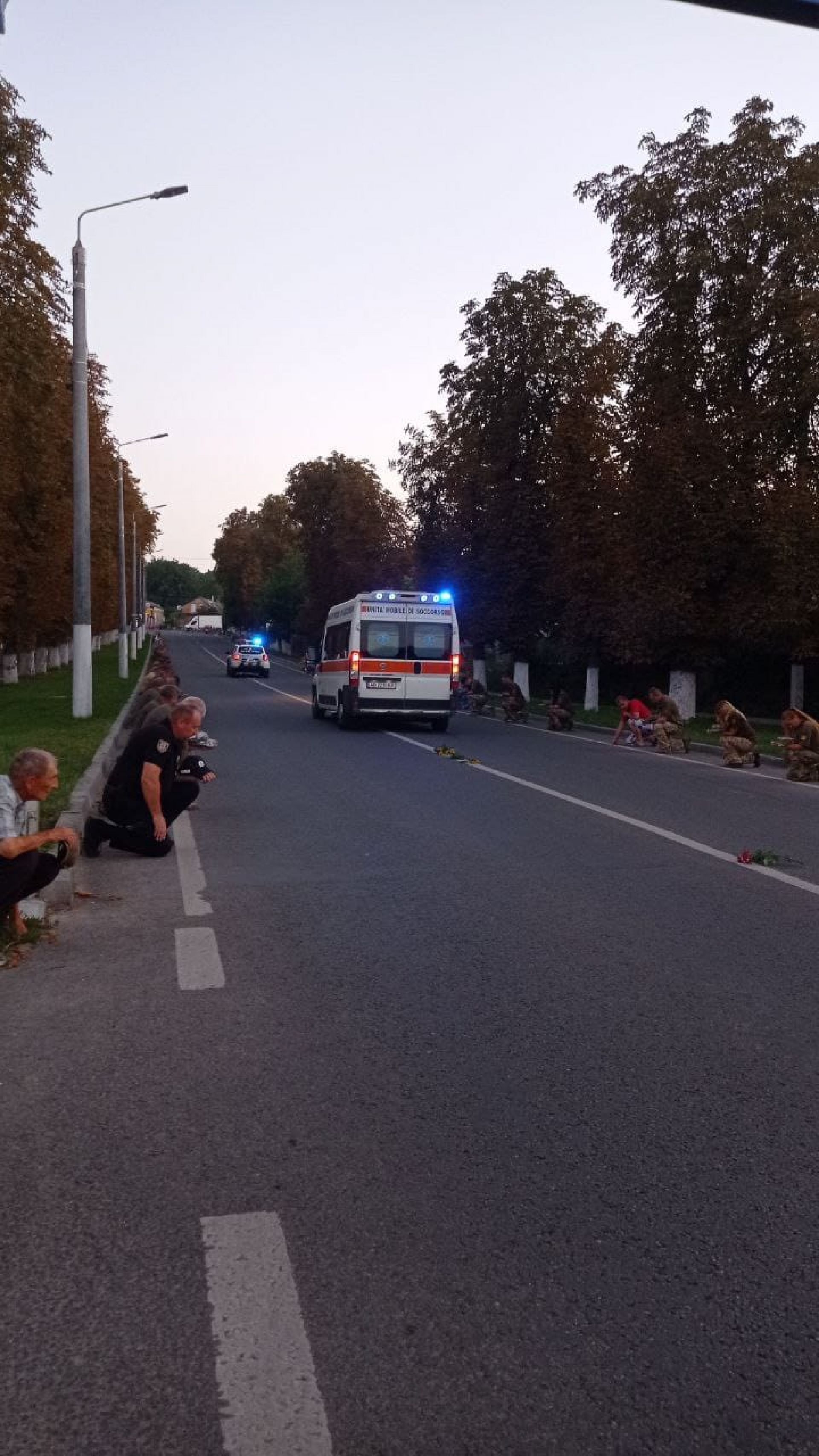- На колінах та з державними прапорами в руках люди створили живий коридор.