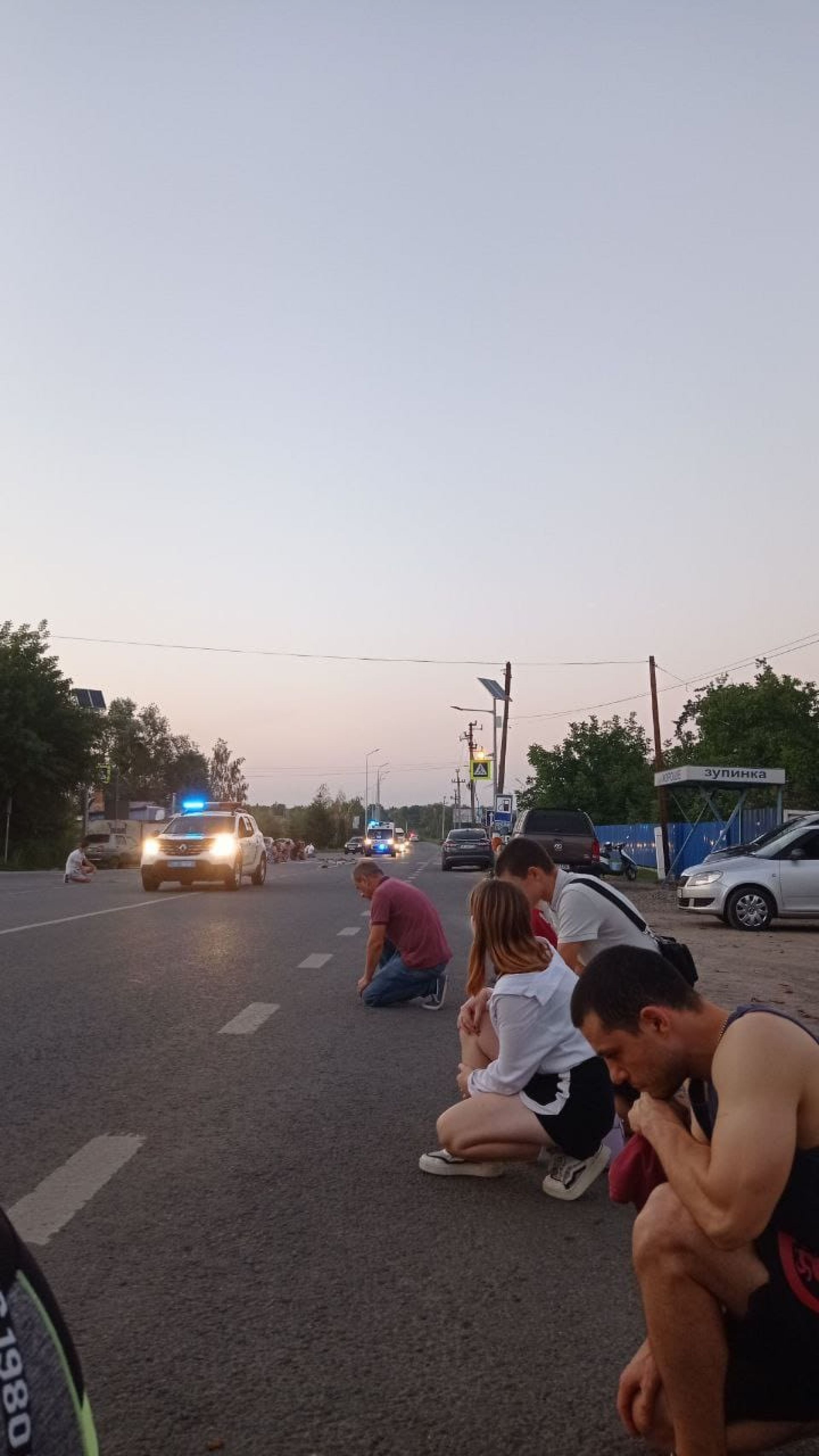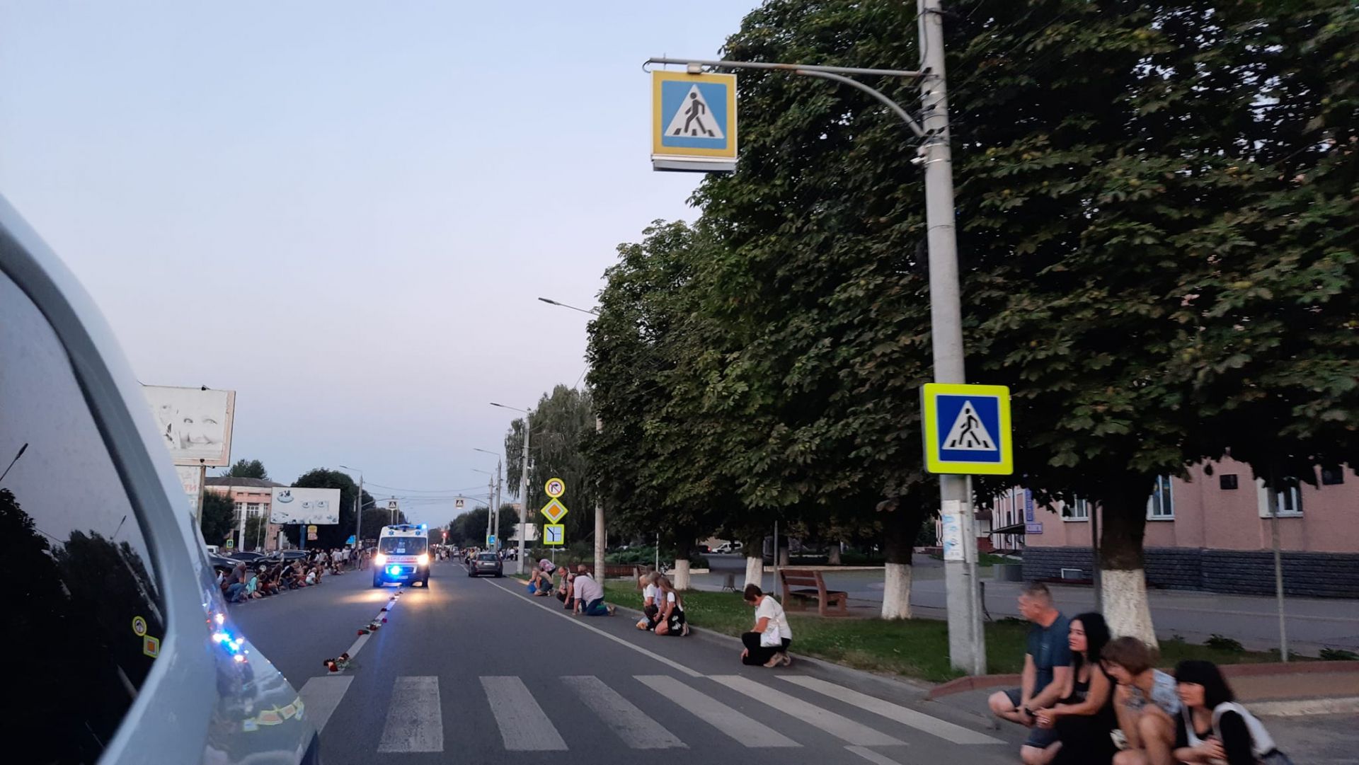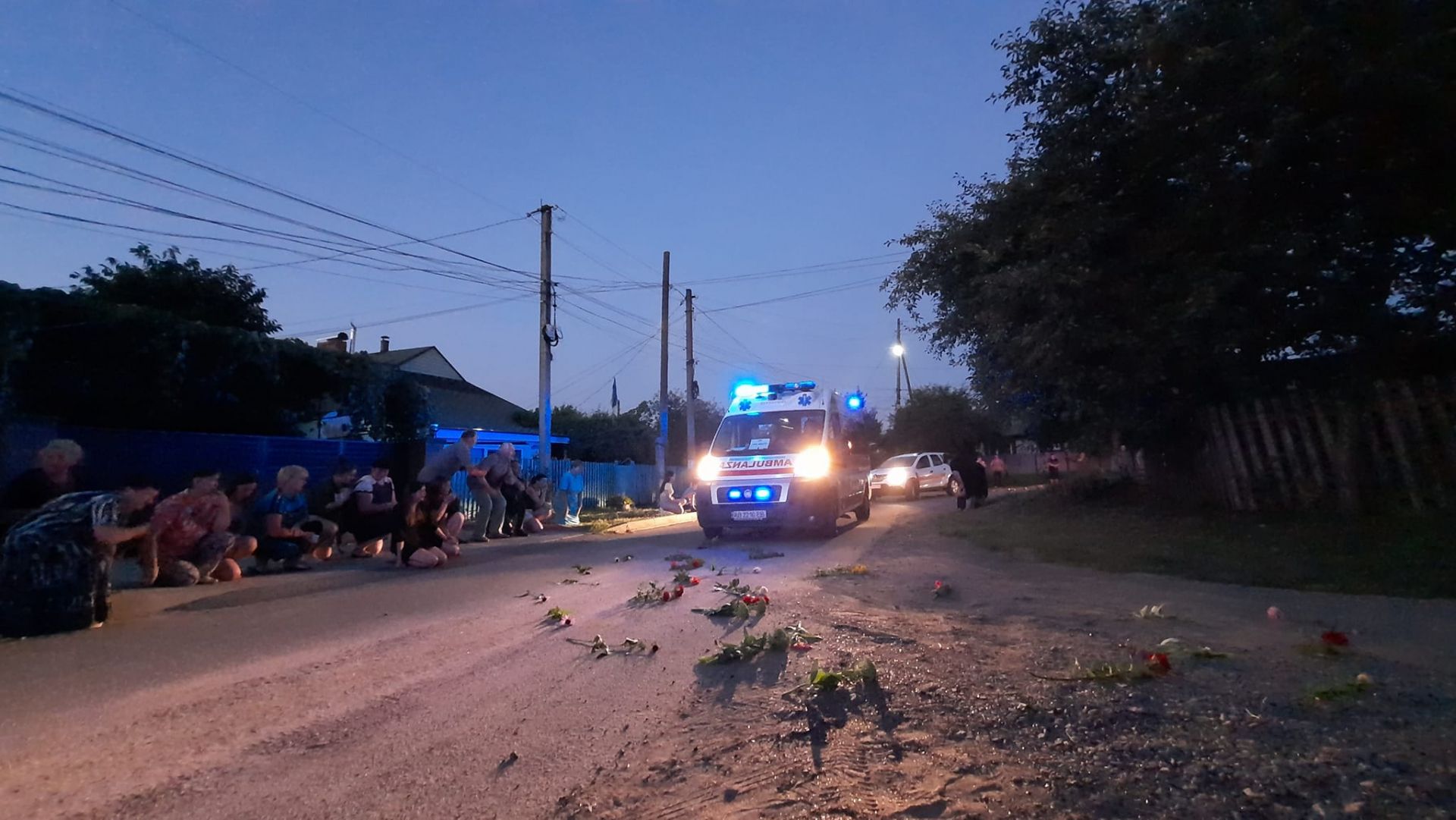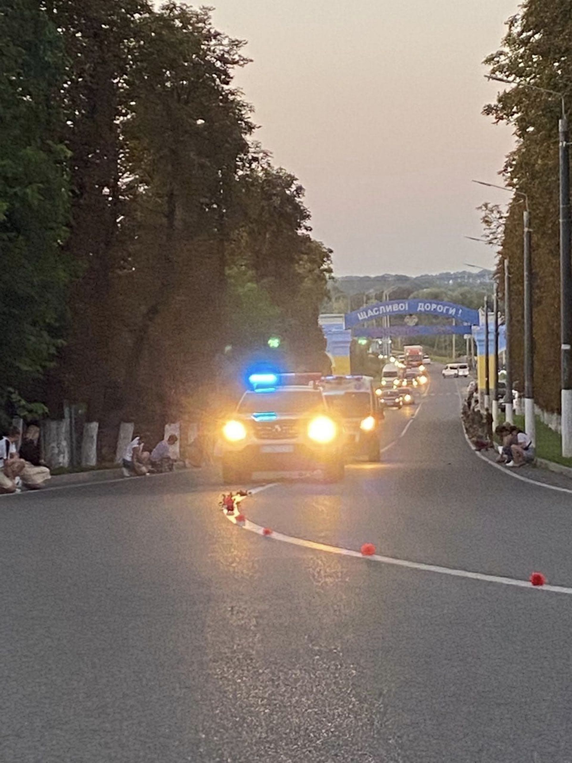 - На колінах та з державними прапорами в руках люди створили живий коридор.