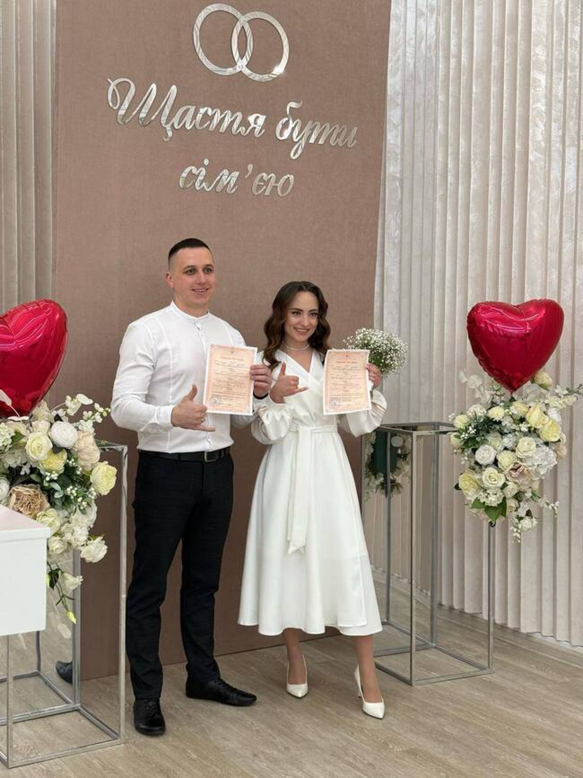 «Дорогі наречені, нехай це свято відчувається не тільки в цей день, але і кожен день, а почуття любові та закоханості живе в серцях протягом довгих років життя», — побажали державні реєстратори молодятам.