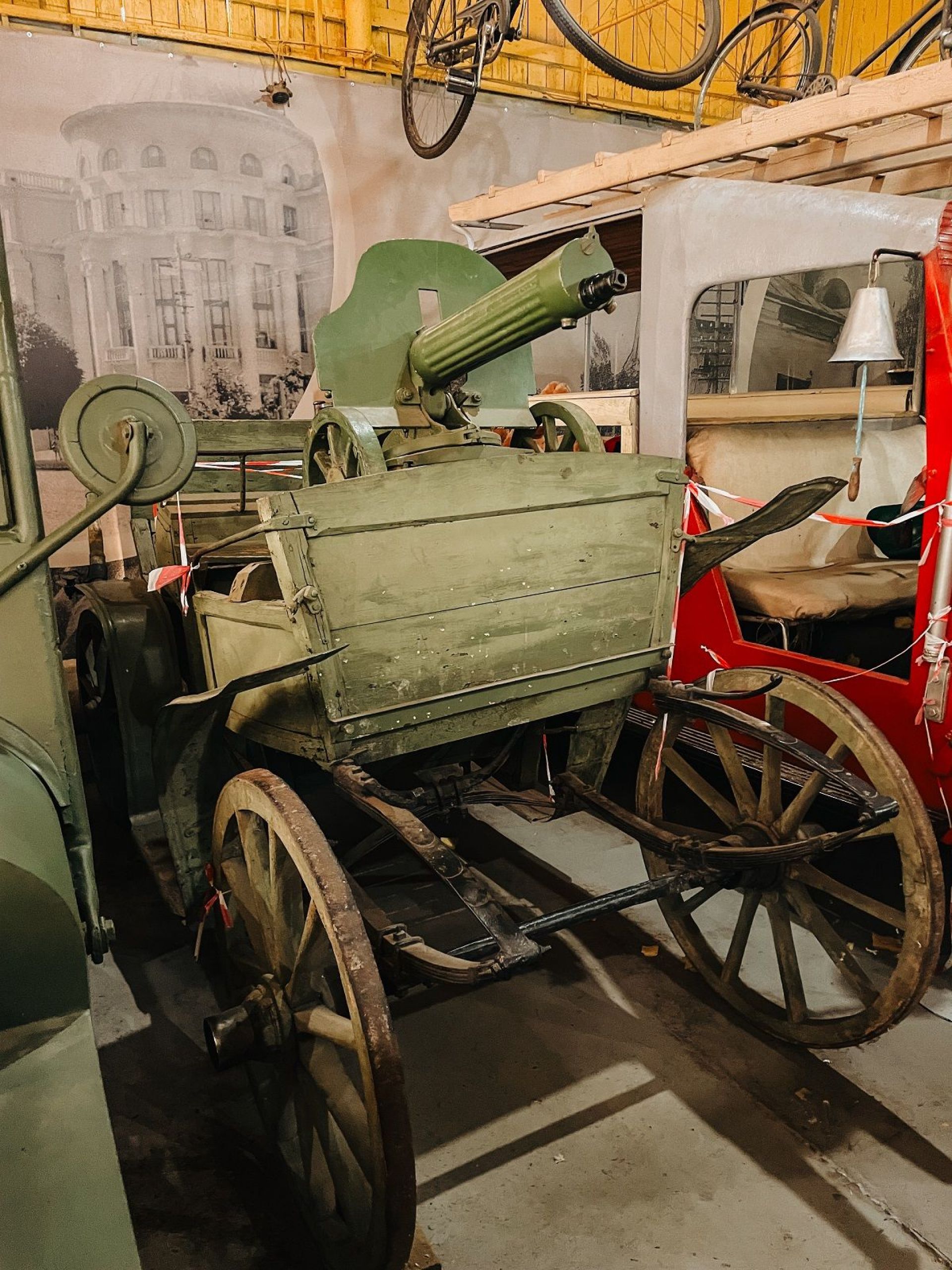 Також на цій виставці можна побачити кінну бойову тачанку з кулеметом «Максим» епохи Першої світової війни. Такі ще називали «махновськими», бо у війська під проводом командувача Революційної повстанської армії України Нестора Махна був цілий кулеметний полк з кількома сотнями таких тачанок. Цей кулемет був найпотужнішою вогневою зброєю на той час, але його використовують і зараз у новітній російсько-українській війні.