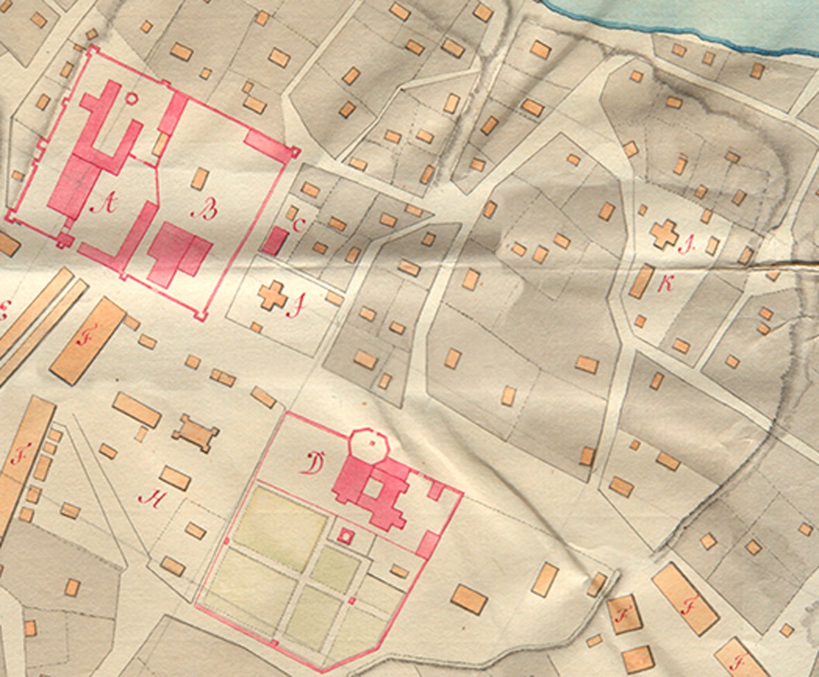 Цікавим є те, що всередині комплексу на плані позначено дві вулиці. Одна пролягала між городом і садом та вела від монастиря до річки, інша — у східному напрямку від будинку на юридиці.