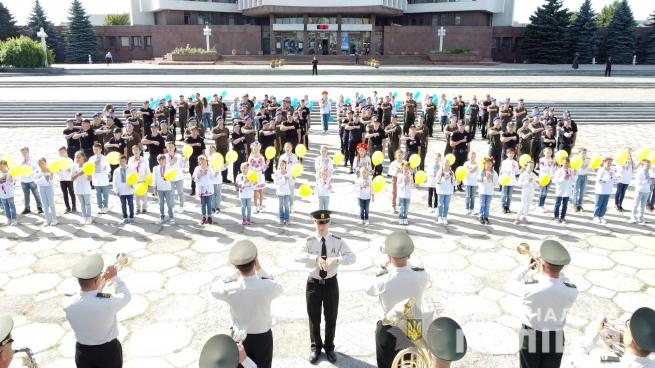 Під акомпанемент оркестру військової частини майже 200 учасників заходу виконали Державний гімн України.