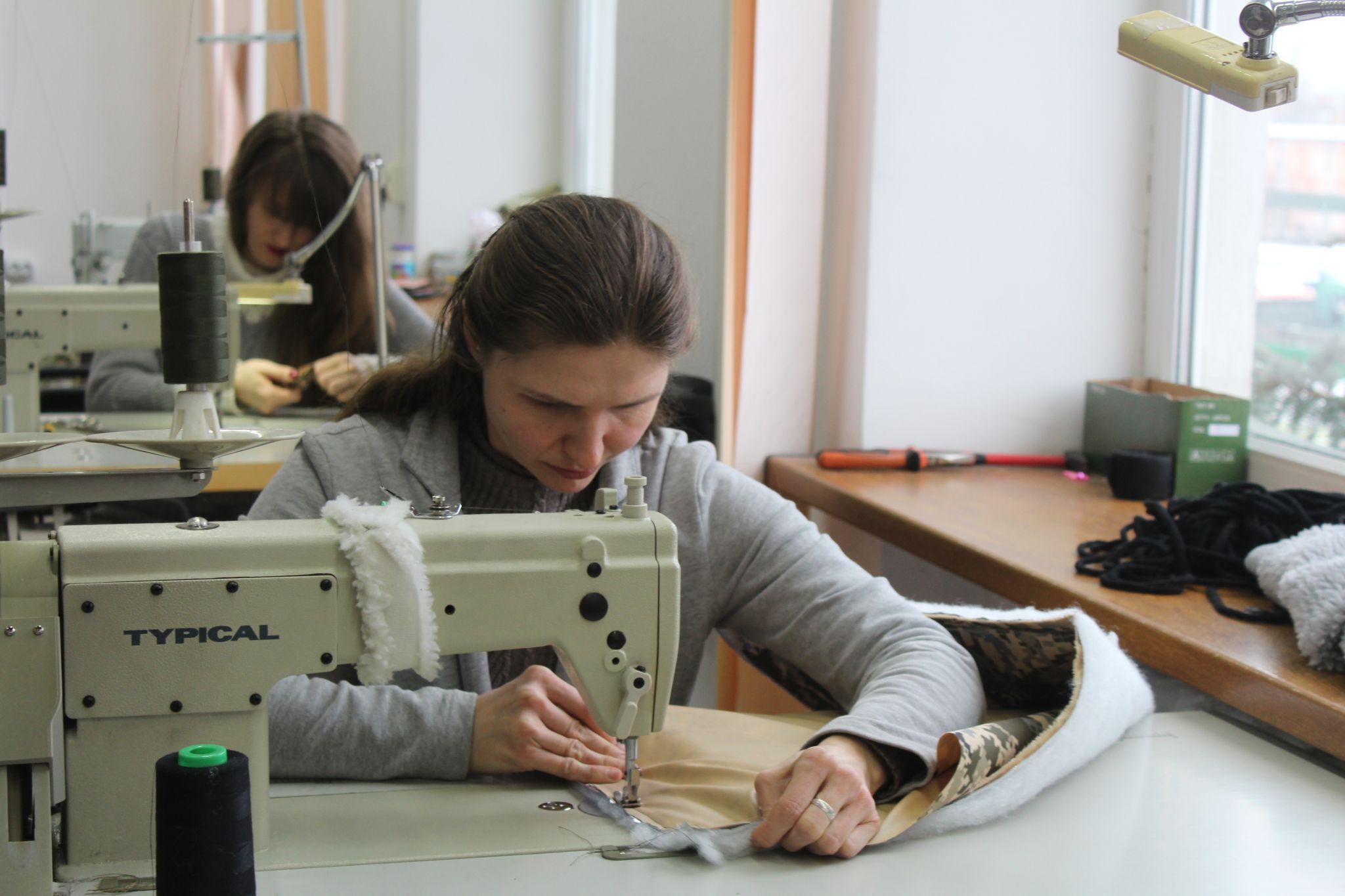 На маленькому швейному підприємстві працюють чотири швачки. Розкроюють піксель, вкладають у нього «сендвіч» з синтепону, фольги, штучного хутра і зшивають вироби.