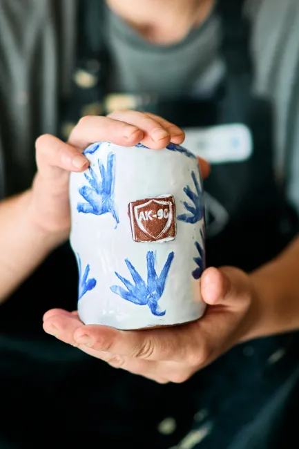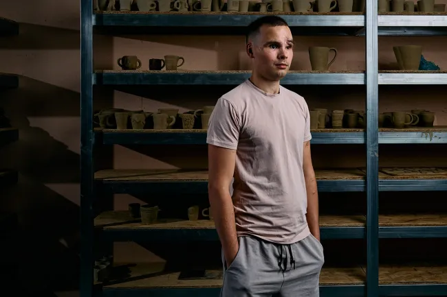 — У глини свій настрій. Буває, що за годину вийде десять виробів, а є дні, коли на крузі все ламається і псується. Можливо, це дивно прозвучить, але глина ніби відчуває мій настрій. Коли я спокійний, то і вона слухняна», — розповідає Антон Кузьо. До того, як стати мінометником, працював зварювальником на «Запоріжсталі».
