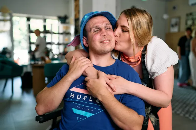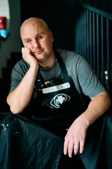 Серед тих, хто сьогодні творить у темряві — і Антон Богач, ветеран десантно-штурмових військ, який півтора роки служив водієм на передовій. У вересні 2023 року він отримав важке поранення, був у комі, після чого проходив довге лікування й реабілітацію: