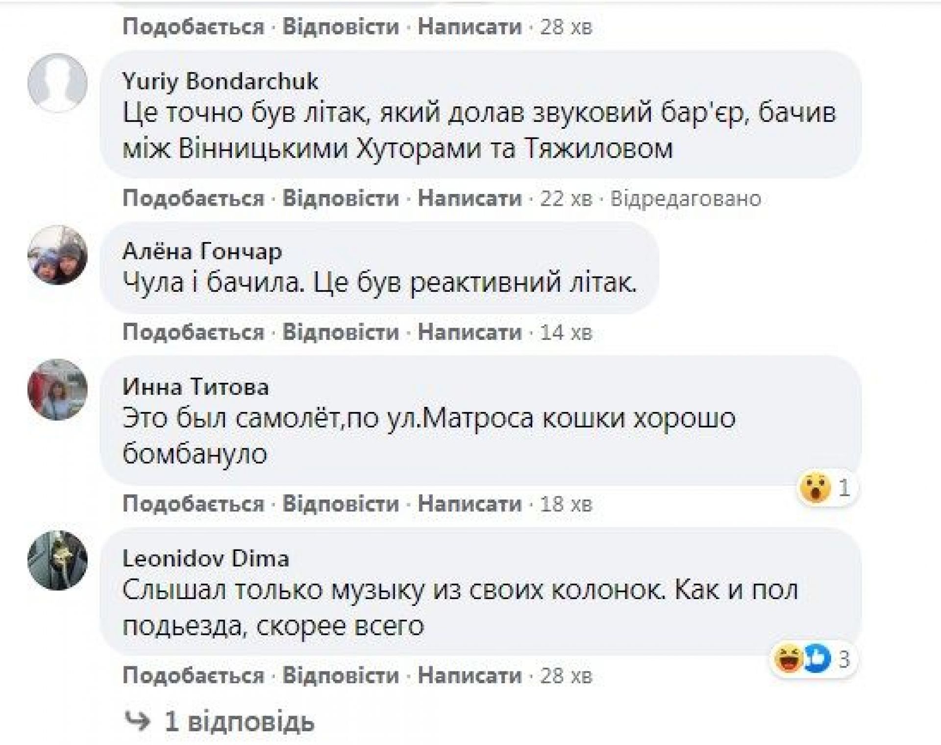 Перш за все ми зателефонували до поліції. Там повідомили, що про ситуацію знають не більше нашого, однак припустили, що цей міг бути літак, який подолав звуковий бар'єр.