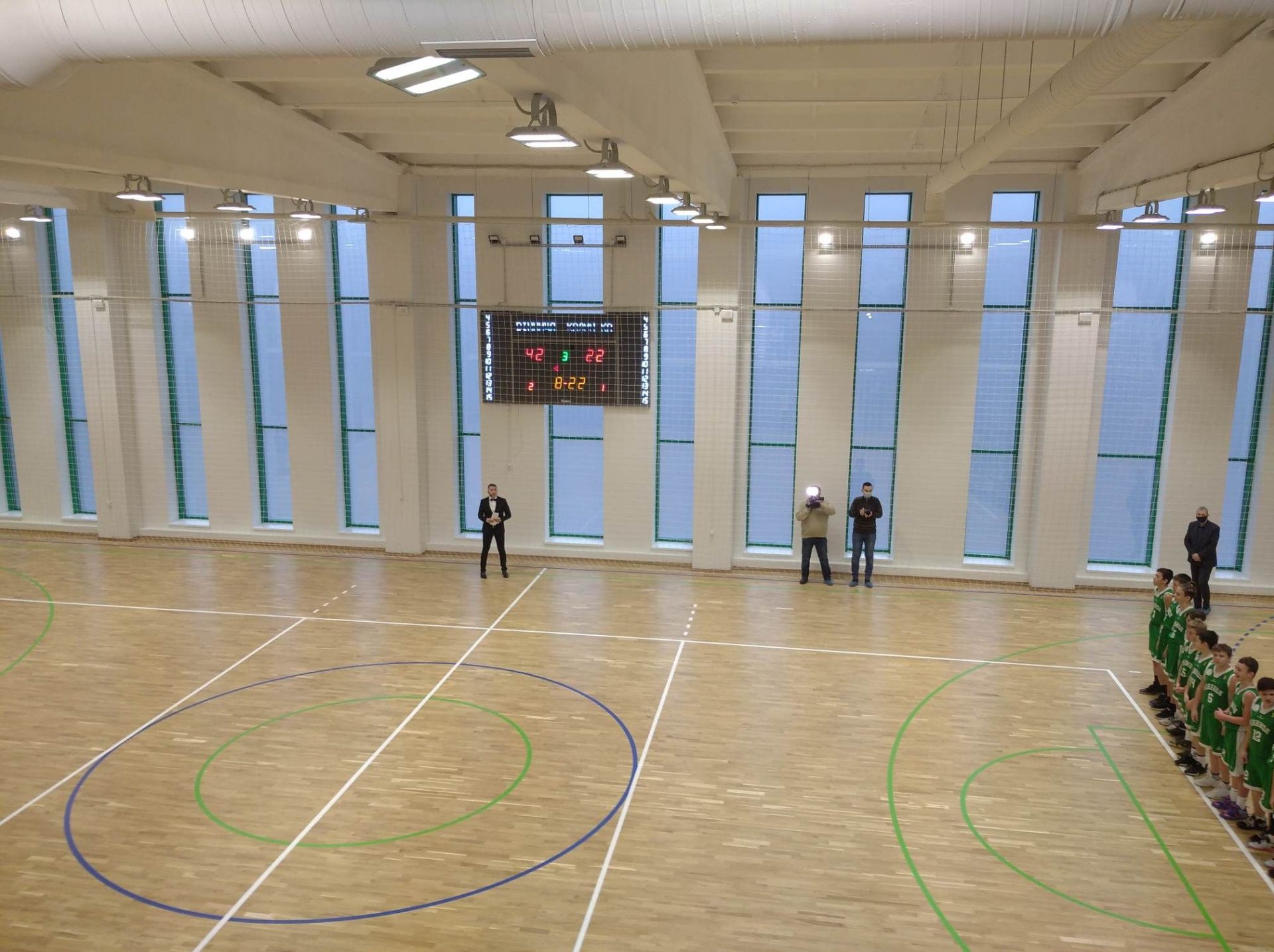 - зал для ігрових видів спорту на 730 кв м, для занять волейболом, баскетболом, футзалом та гандболом.,