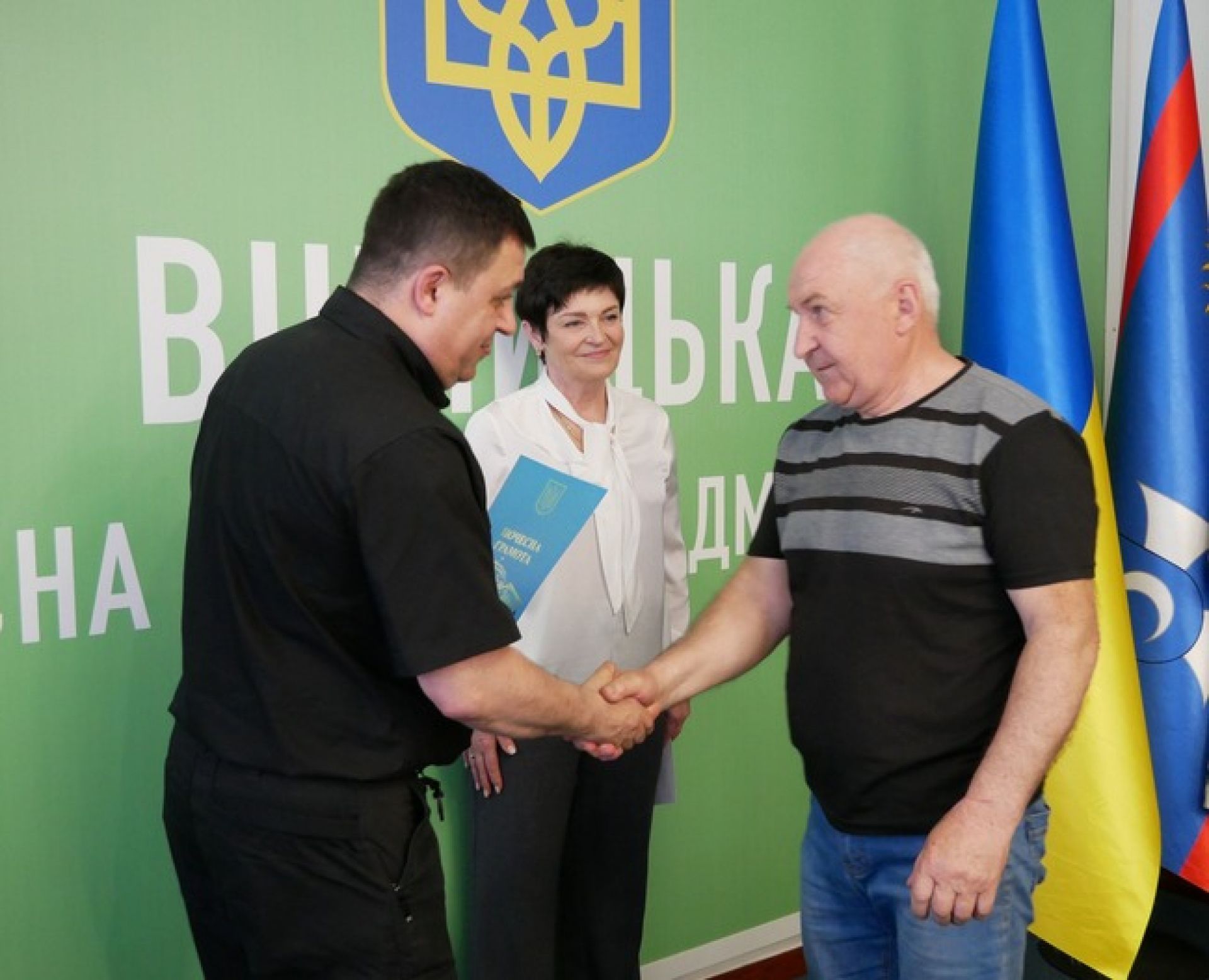 Відзнаки від обласної військової адміністрації та обласної Ради вручили заступник начальника ОВА Андрій Кавунець та начальниця управління виконавчого апарату обласної Ради Надія Марусяк — як подяку за відвагу, самопожертву та гідність.