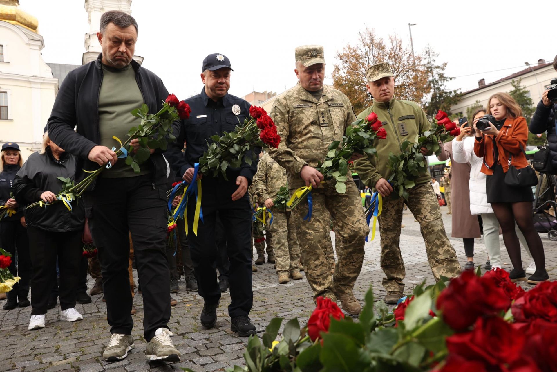 У Вінниці вшанували Захисників і Захисниць, які загинули за незалежність України. Сьогодні, 1 жовтня, правоохоронці, керівництво області та міста, військові та вінничани поклали квіти до Меморіалу загиблих захисників.