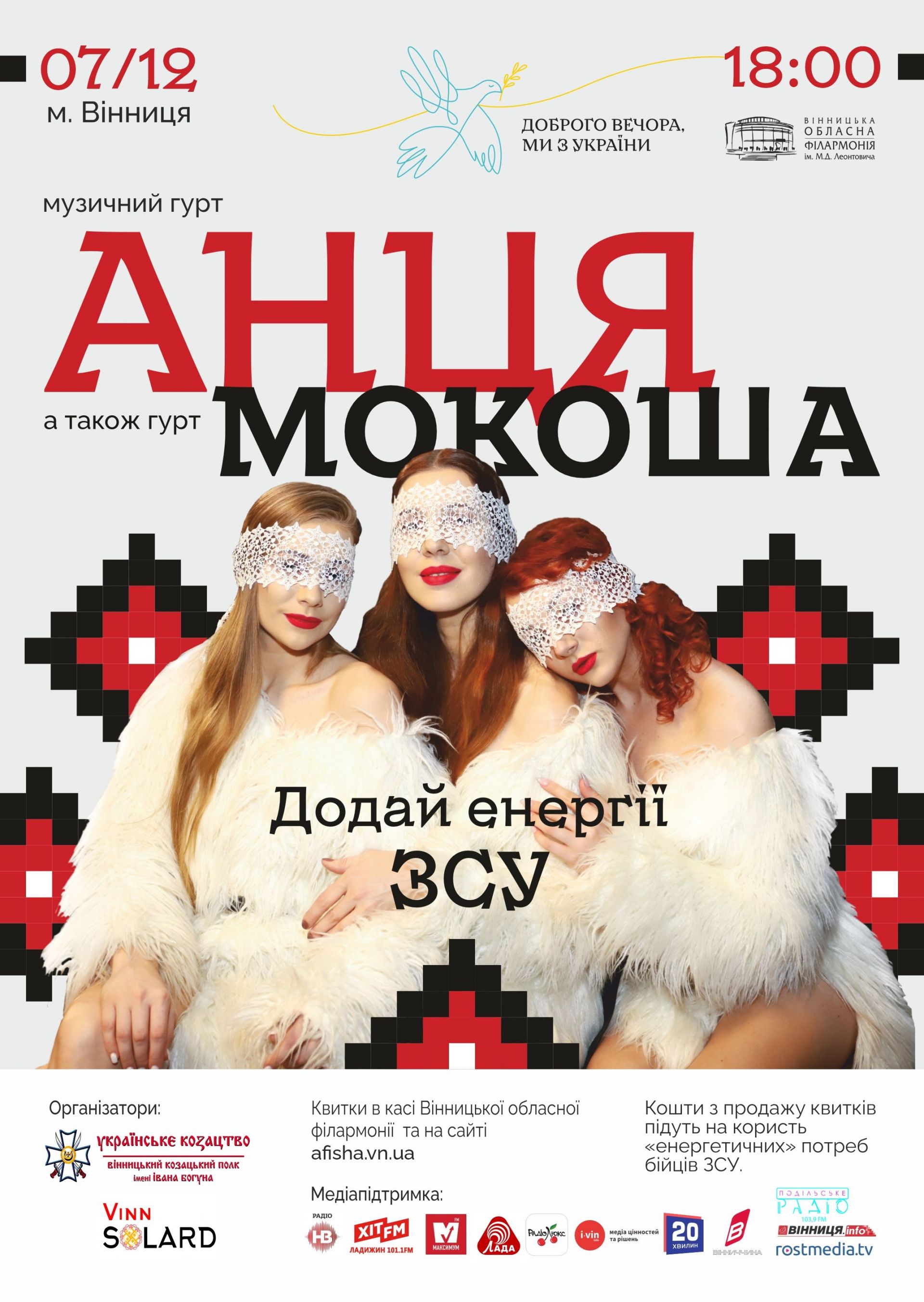- Додай енергії бійцям ЗСУ! Приходь на концерт музичного гурту «Анця», який відбудеться в рамках благодійного проекту «Доброго вечора, ми з України!»