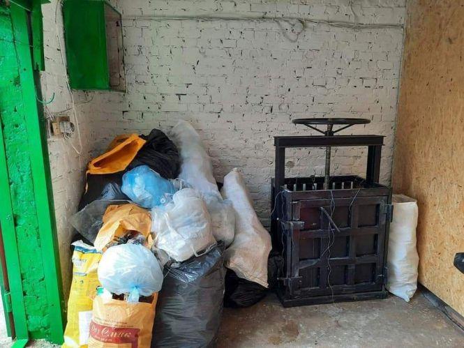 Для станції придбали механічний прес для брикетування пластику та додаткові контейнери. А техпрацівники школи переобладнали частину шкільного гаража та створили умови для роботи сортувальної станції.