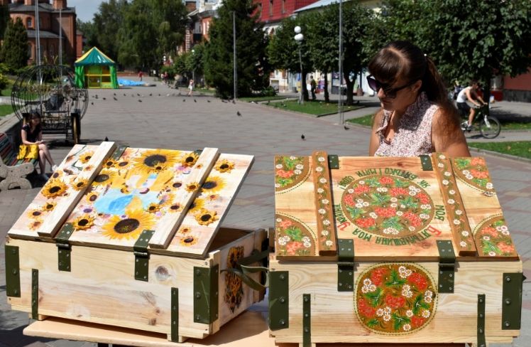 Змінили не тільки самі ящики. У них поклали вироби дітей ляльки-мотанки, витинанки, декорування зі шкіри, малюнки у стилі петриківського розпису.
