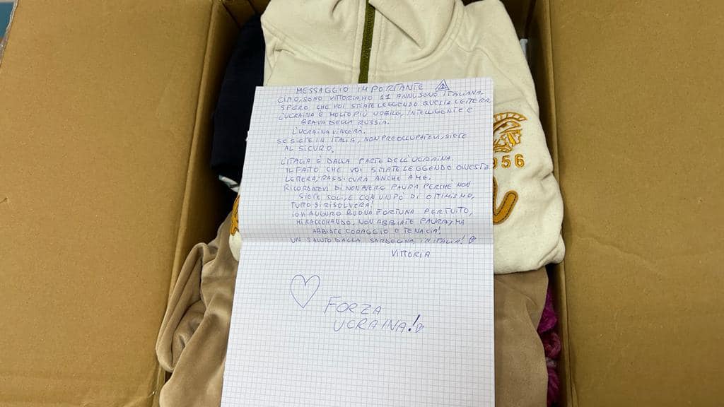 «Україна шляхетніша, розумніша і краща за росію, — пише дівчинка, яку звати Вікторія. — Україна переможе! Італія на стороні України».