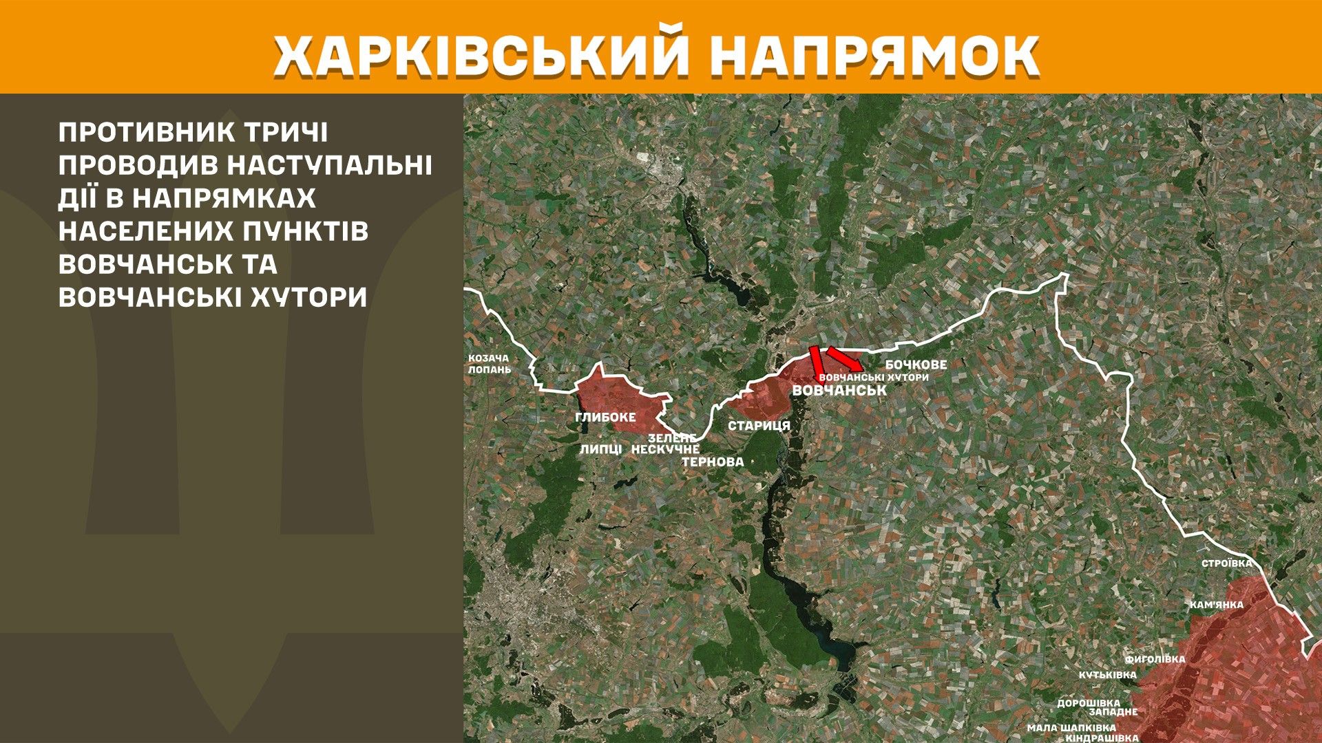 На Харківському напрямку противник минулої доби тричі проводив наступальні дії в напрямках населених пунктів Вовчанськ та Вовчанські Хутори.