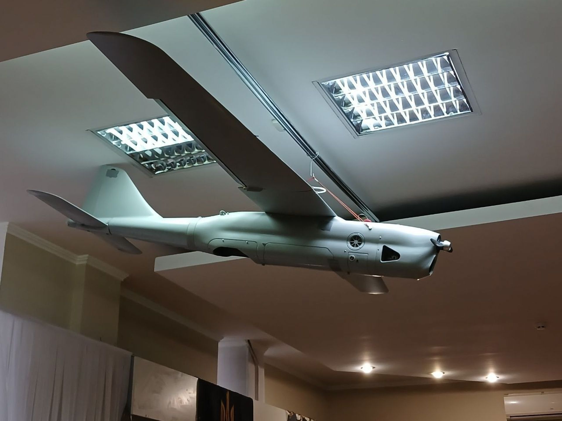У центрі виставки розташовано трофейний російський БПЛА оперативного-стратегічного призначення «ОРЛАН-10».