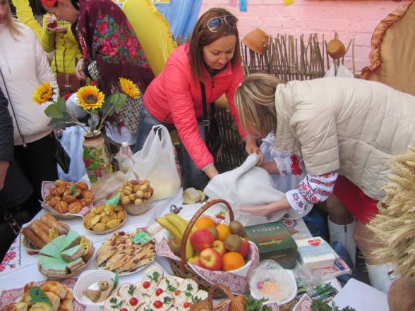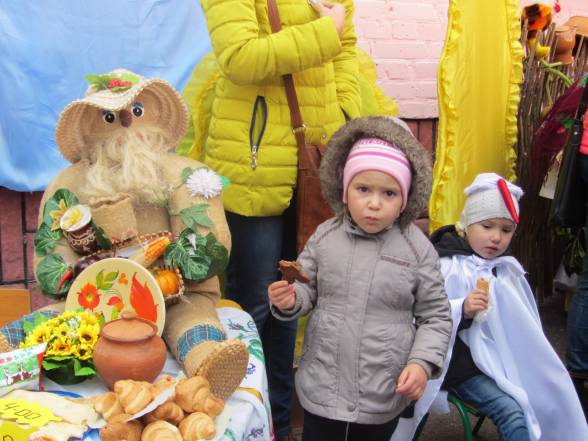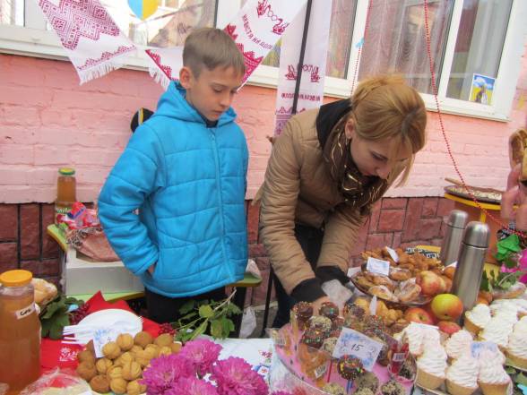 На традиційному осінньому ярмарку у Вінницькому 35-му садочку "Віночок" сьогодні, 7 жовтня, батьки продавали тістечка та тортики. Дітки співали пісні та розказували вірші про Україну.