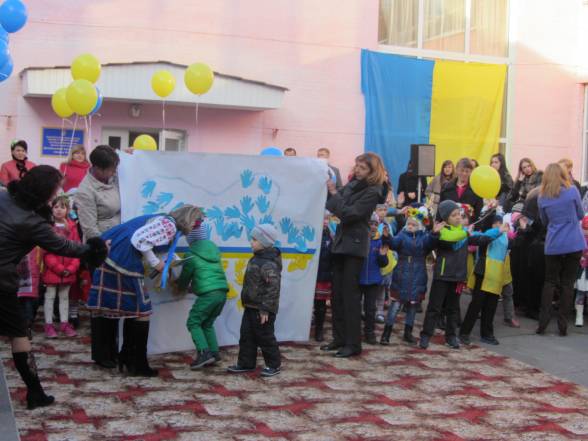 У садочку №35 санаторного типу навчаються дітки, які часто хворіють. Захід мав пройти на площі перед міськрадою, але його перенесли через приїзд до Вінниці делегації з Великобританії.