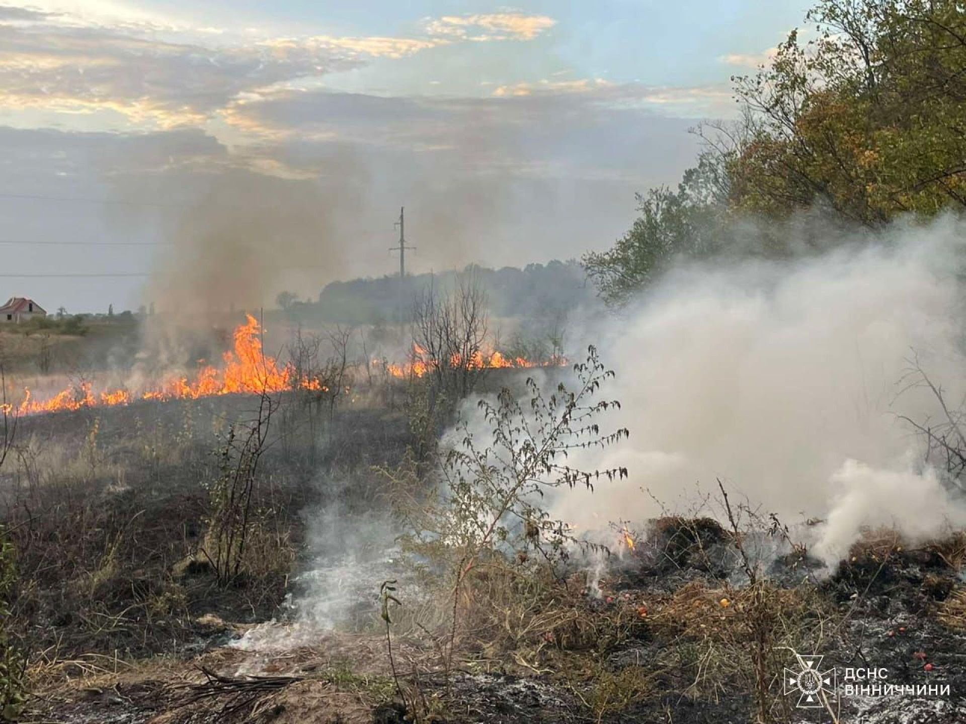 Також надзвичайники ліквідували пожежі на відкритій території. Зокрема, горіла суха трава за межами с. Демидівка Тростянецької громади та гілля на 2-му Індустріальному провулку в місті Вінниці.