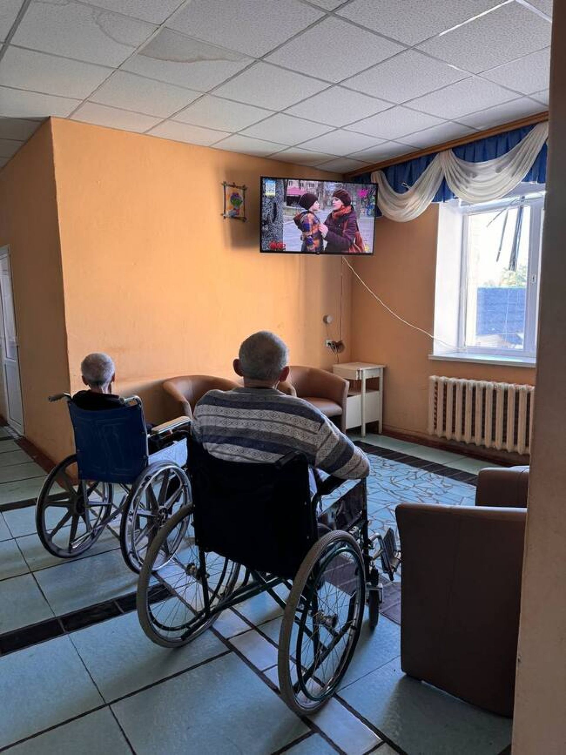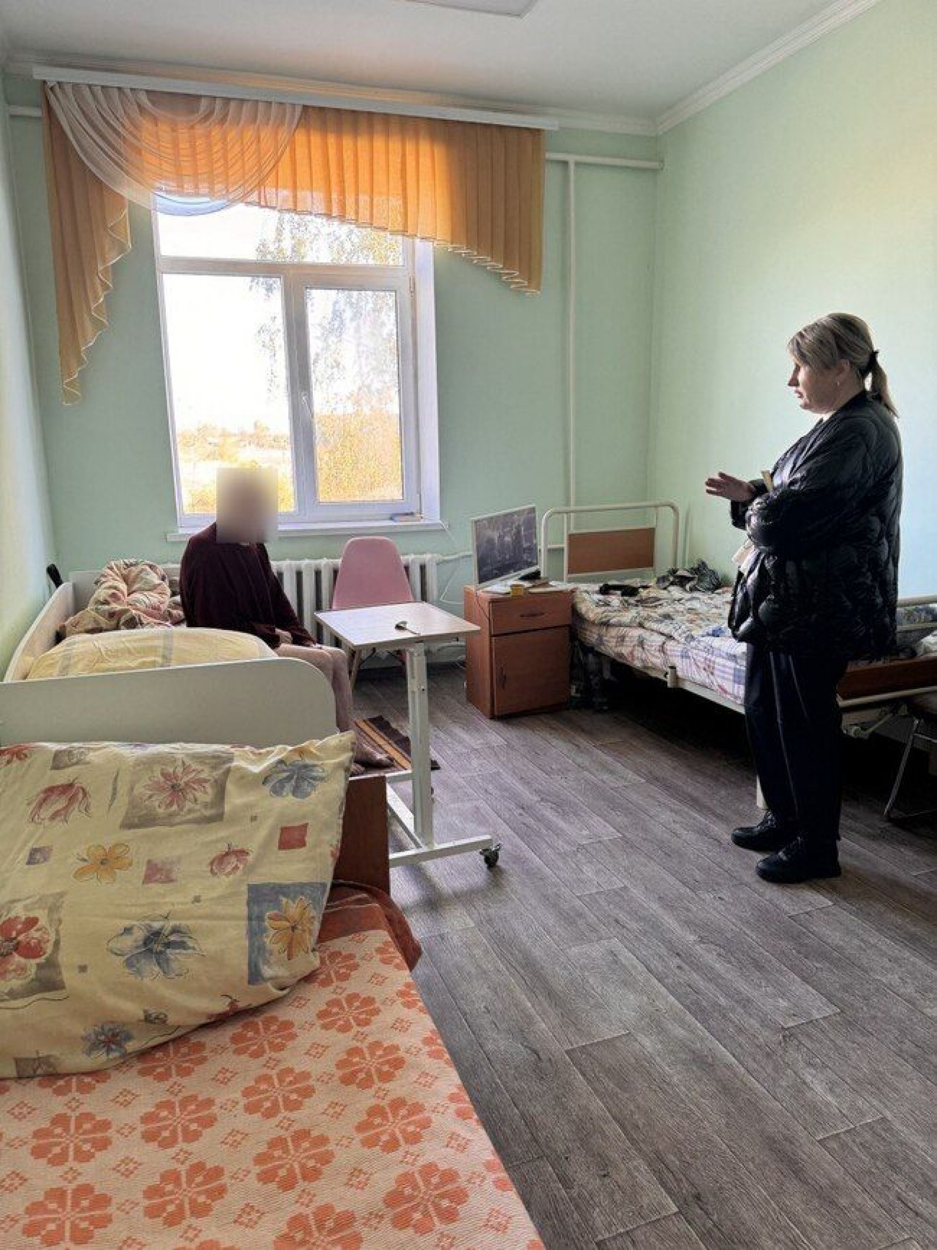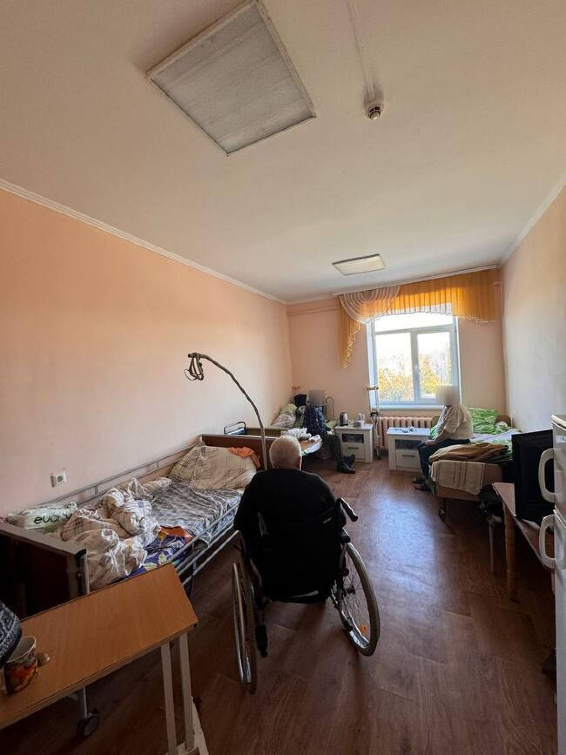 — Проектна потужність закладу розрахована на проживання 37 підопічних, на час візиту у відділенні перебувало 30 осіб, з них: 16 осіб з інвалідністю, 7 осіб, що пересуваються на візках, 18 ліжкохворих, 4 особи з психічними розладами, — йдеться у повідомленні. — Відділення розташоване в двохповерховій будівлі, на час візиту в приміщеннях першого поверху проводяться ремонтні роботи, з урахуванням потреб людей з особливими потребами. Усі житлові кімнати знаходяться на другому поверсі, у зв’язку з чим, у підопічних відсутня можливість перебувати на свіжому повітрі без сторонньої допомоги. Вільний час підопічні проводять у обладнаній телевізійній зоні на коридорі.