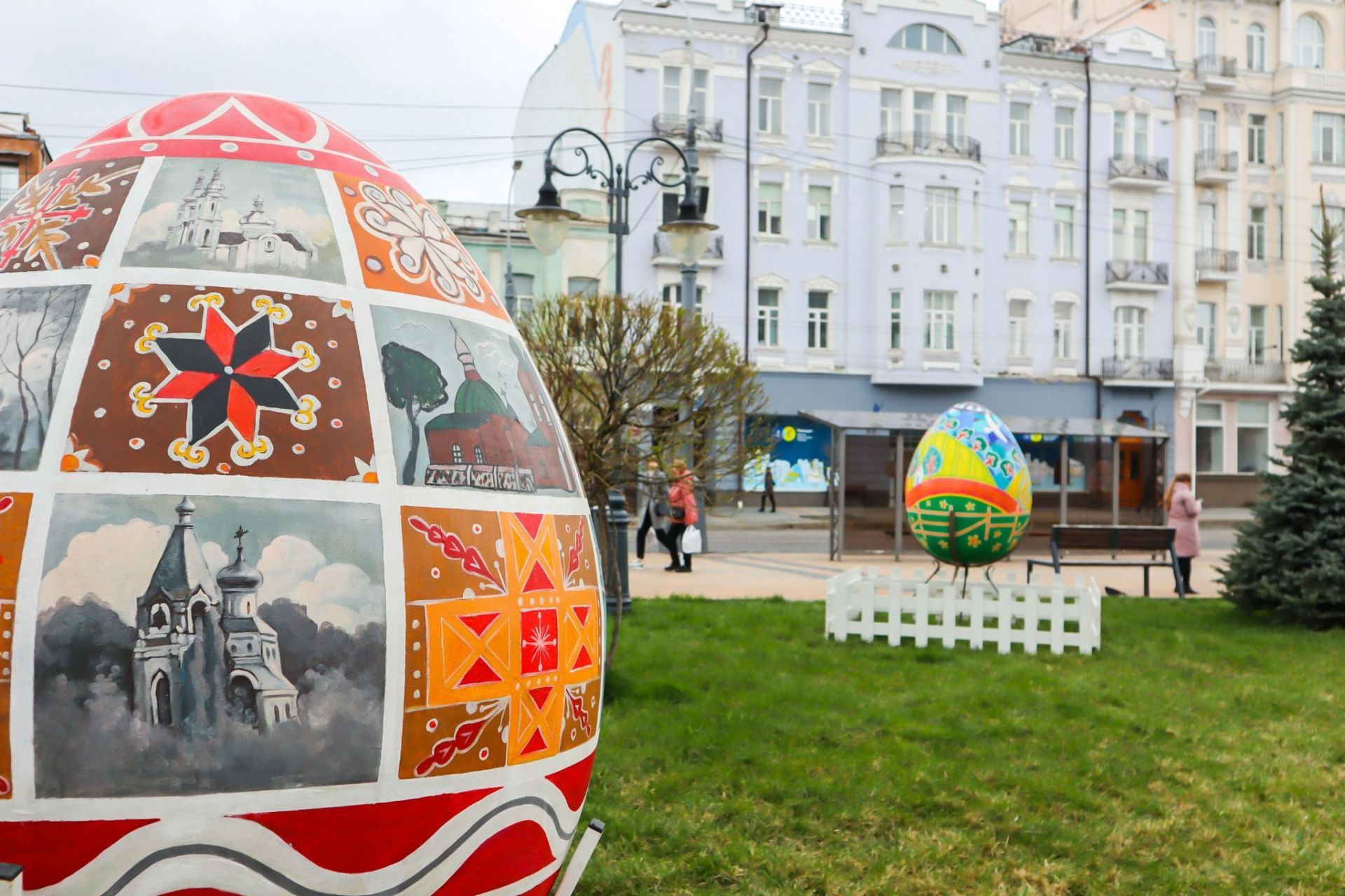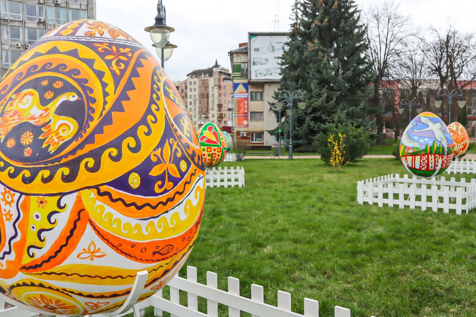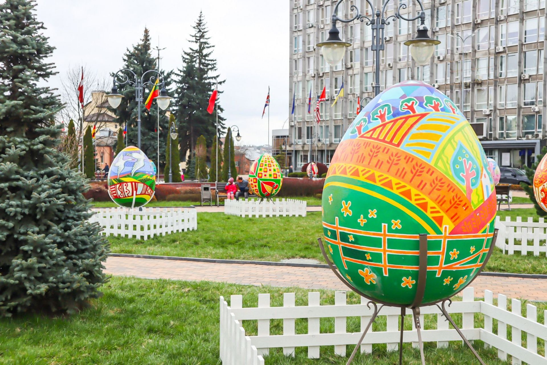 Сім років поспіль напередодні Великодня в центрі міста встановлюють писанки — велетні з українським орнаментом, оберегами та символами міста.