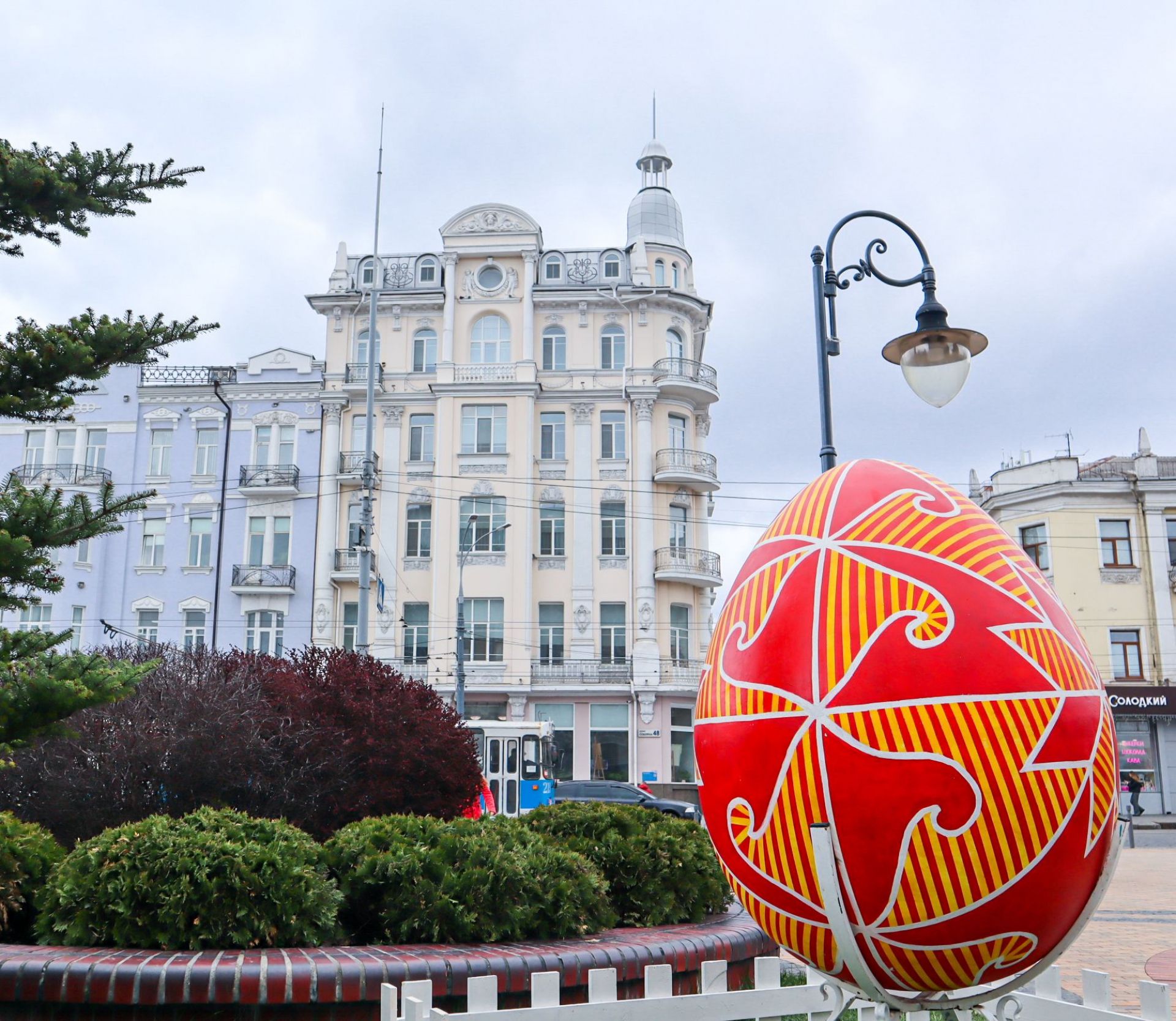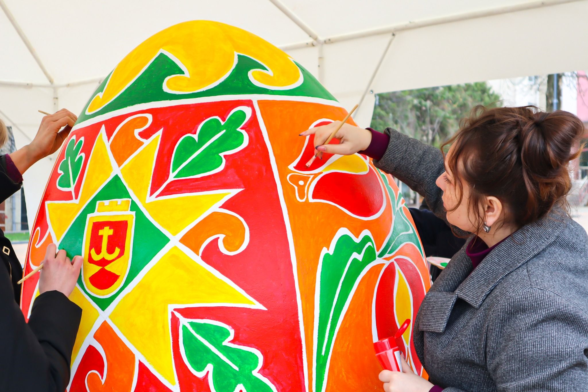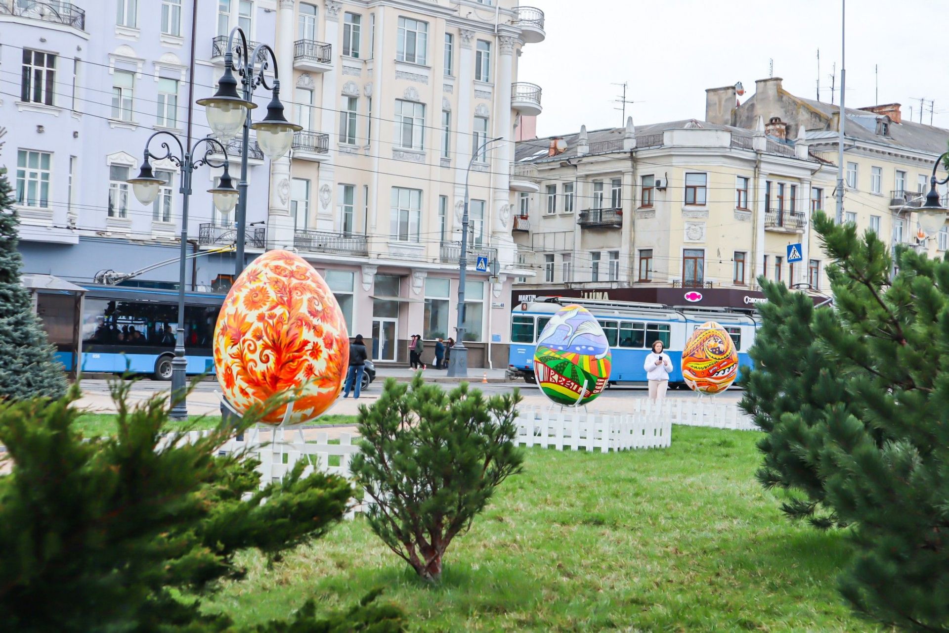 Сім років поспіль напередодні Великодня в центрі міста встановлюють писанки — велетні з українським орнаментом, оберегами та символами міста.