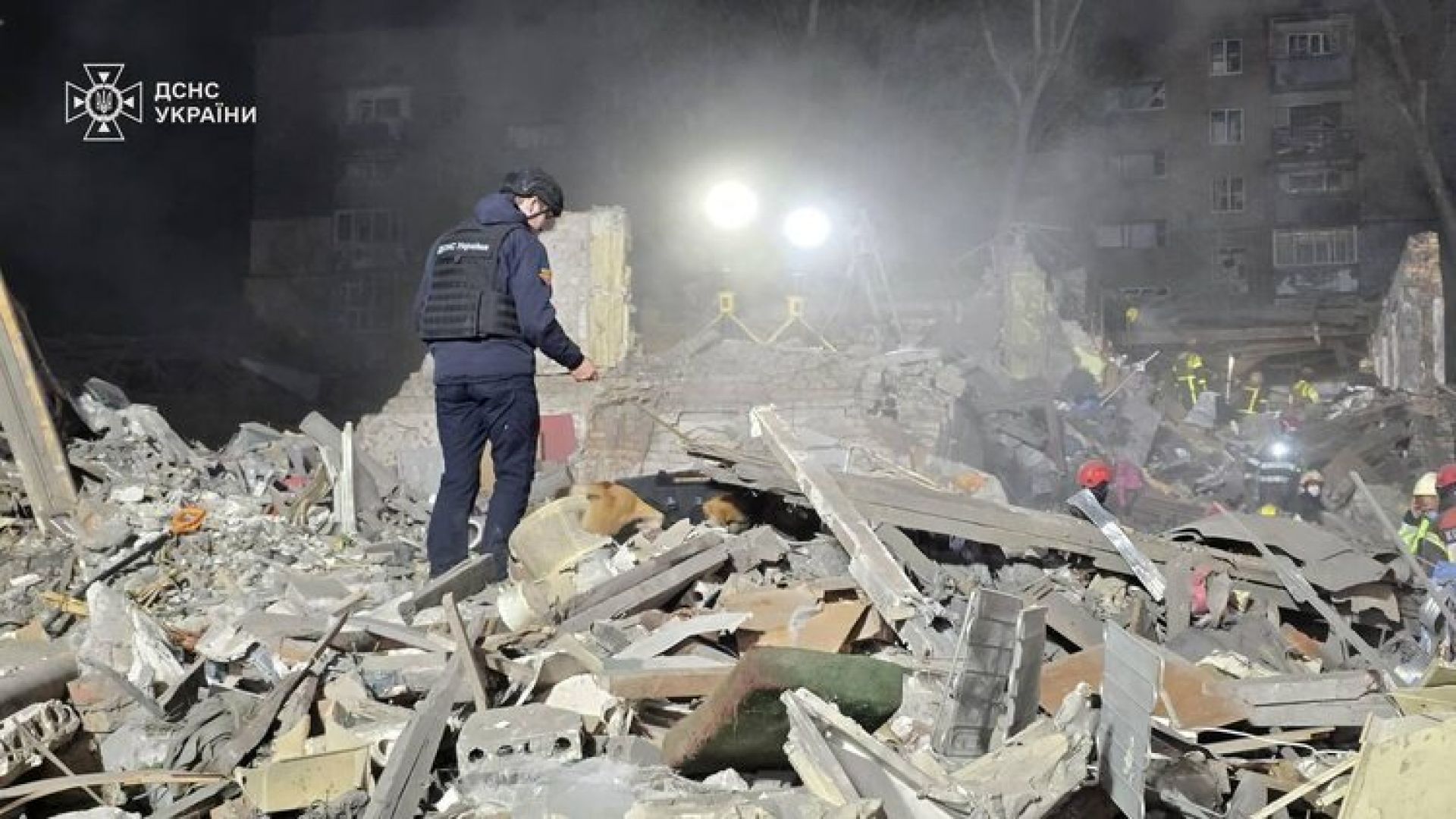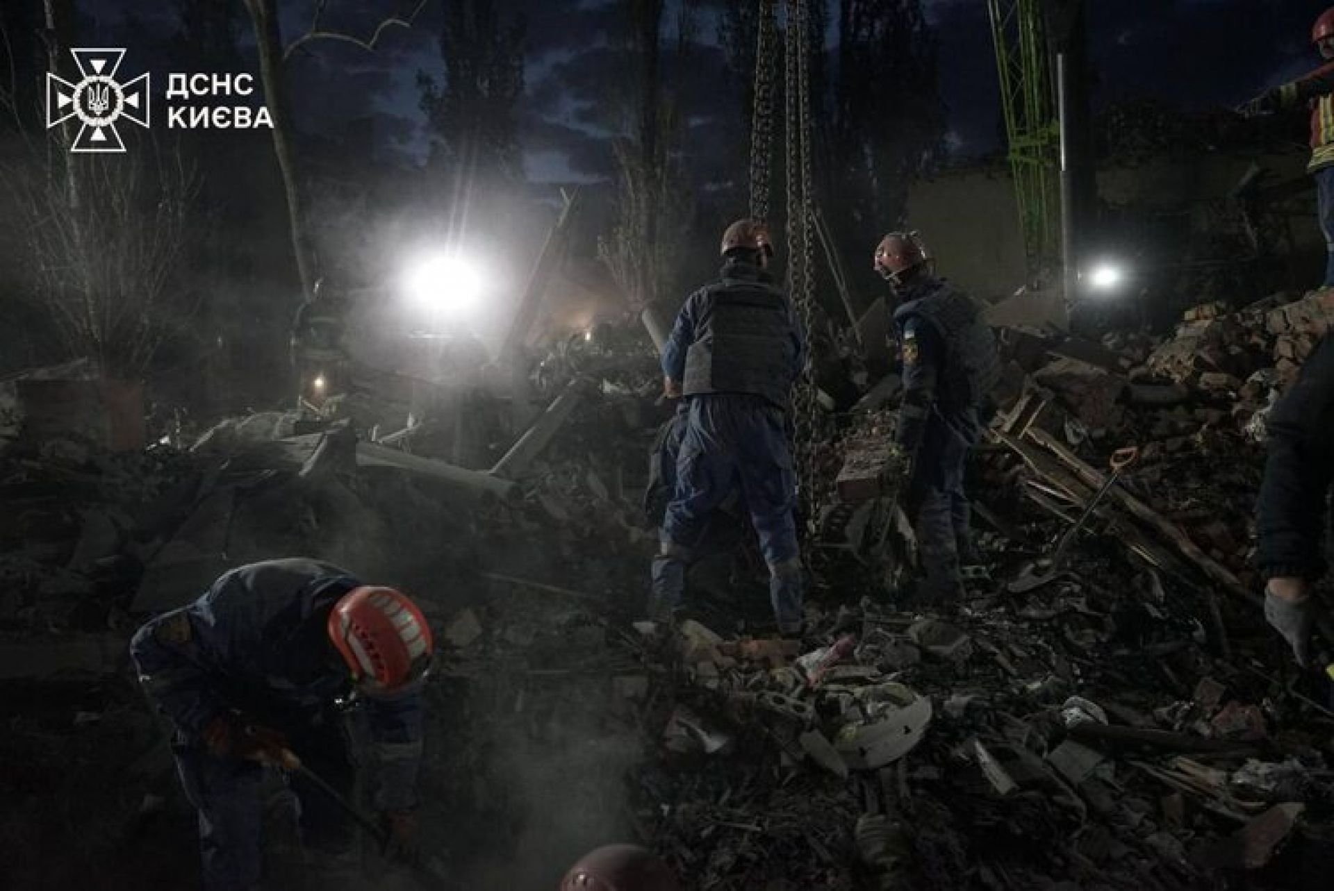 — Найбільше постраждав Київ: рятувальники працювали на 13 локаціях. Трагічні наслідки в Святошинському районі. Там ще триває розбір завалів зруйнованого будинку. Залучені інженерні сили, верхолази ДСНС, пошукові собаки. З-під руїн чути телефонні дзвінки — пошуки триватимуть, доки не переконаються, що вже дістали всіх. Є інформація про двох дітей, яких досі не можуть знайти на місці події, — розповів Ігор Клименко.