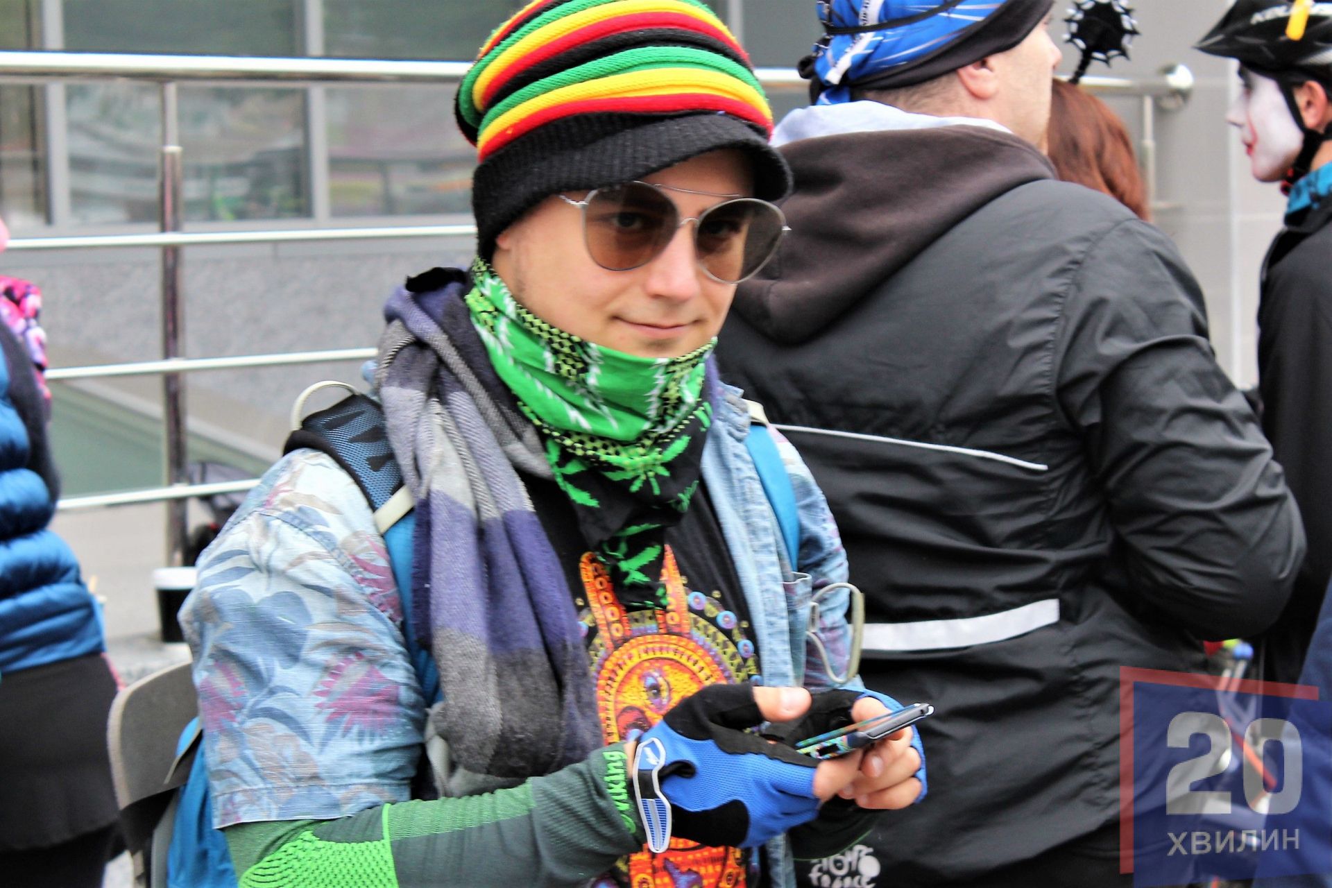 — На цей Хелловін мав бути образ у вигляді вампіра: тільки з зубами та плащем. Але завдяки підказкам велодрузів вирішив змінити свій вигляд на персонажа з фільму «Воно». Тому тепер мій образ — як той страшний клоун, який жахав людей (ім’я клоуна Пенівайз — авт.), — розказав учасник велопараду Дмитро.