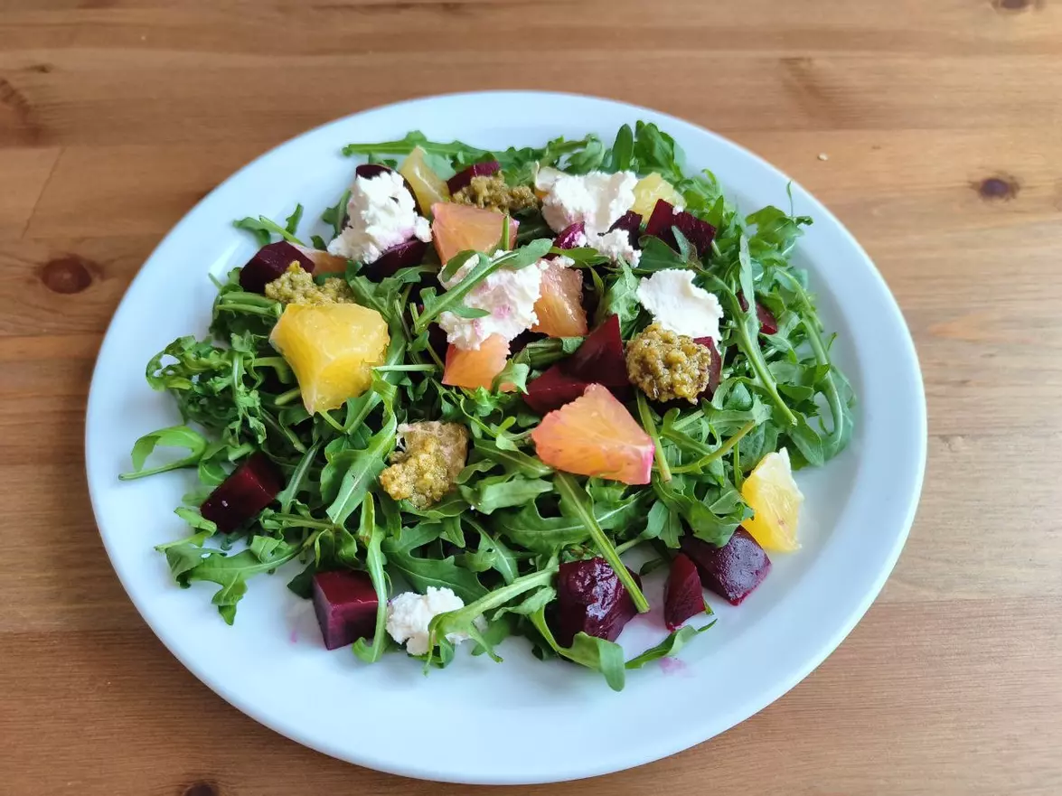 — Дам вам рецепт цікавого і яскравого салату з гіркуватої руколи, солодкого, зі смаком землі, буряка, кисло-солодкого апельсину і фети, змішаної з травами і зубчиком часнику. Можете не брати часник, якщо не полюбляєте його у салатах, — радить Павлова.