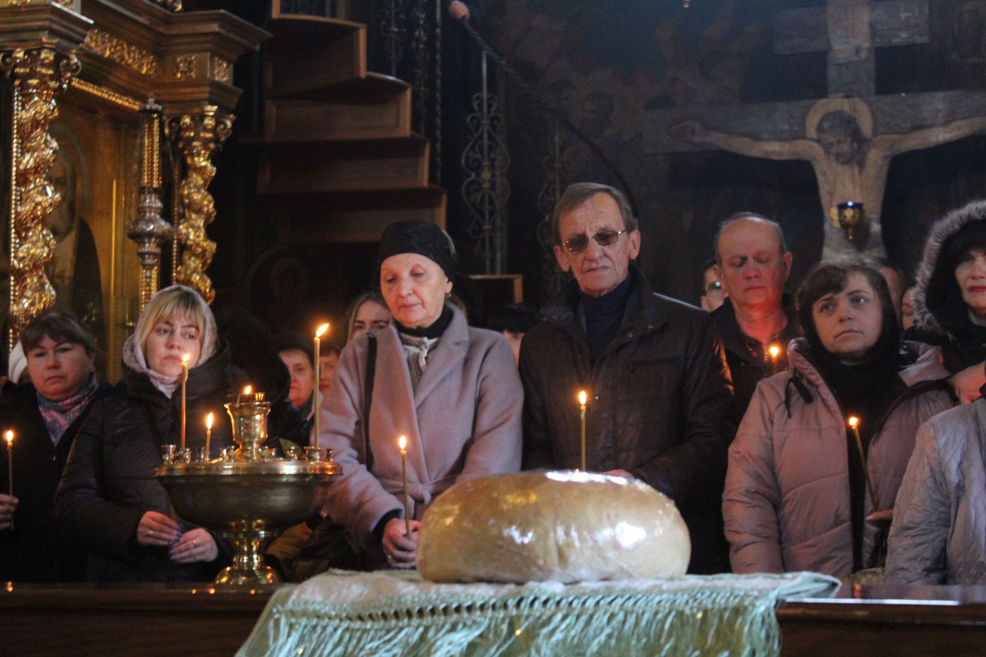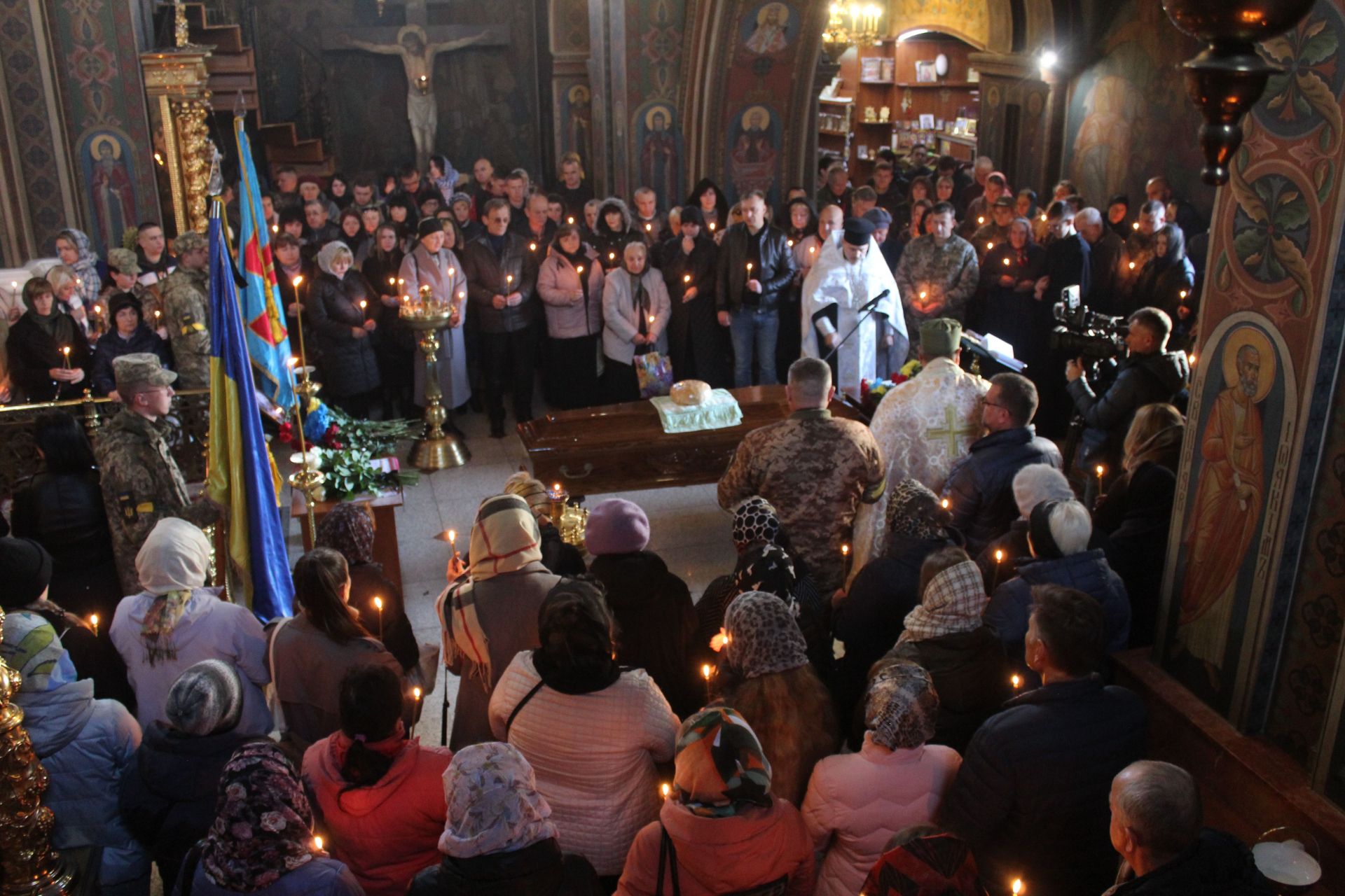 Проходимо в середину храму, а там вже триває служба під керівництвом митрополита Симеона. Священнослужителі читають молитви, звертаються до Бога, аби той простив усі гріхи Романові.