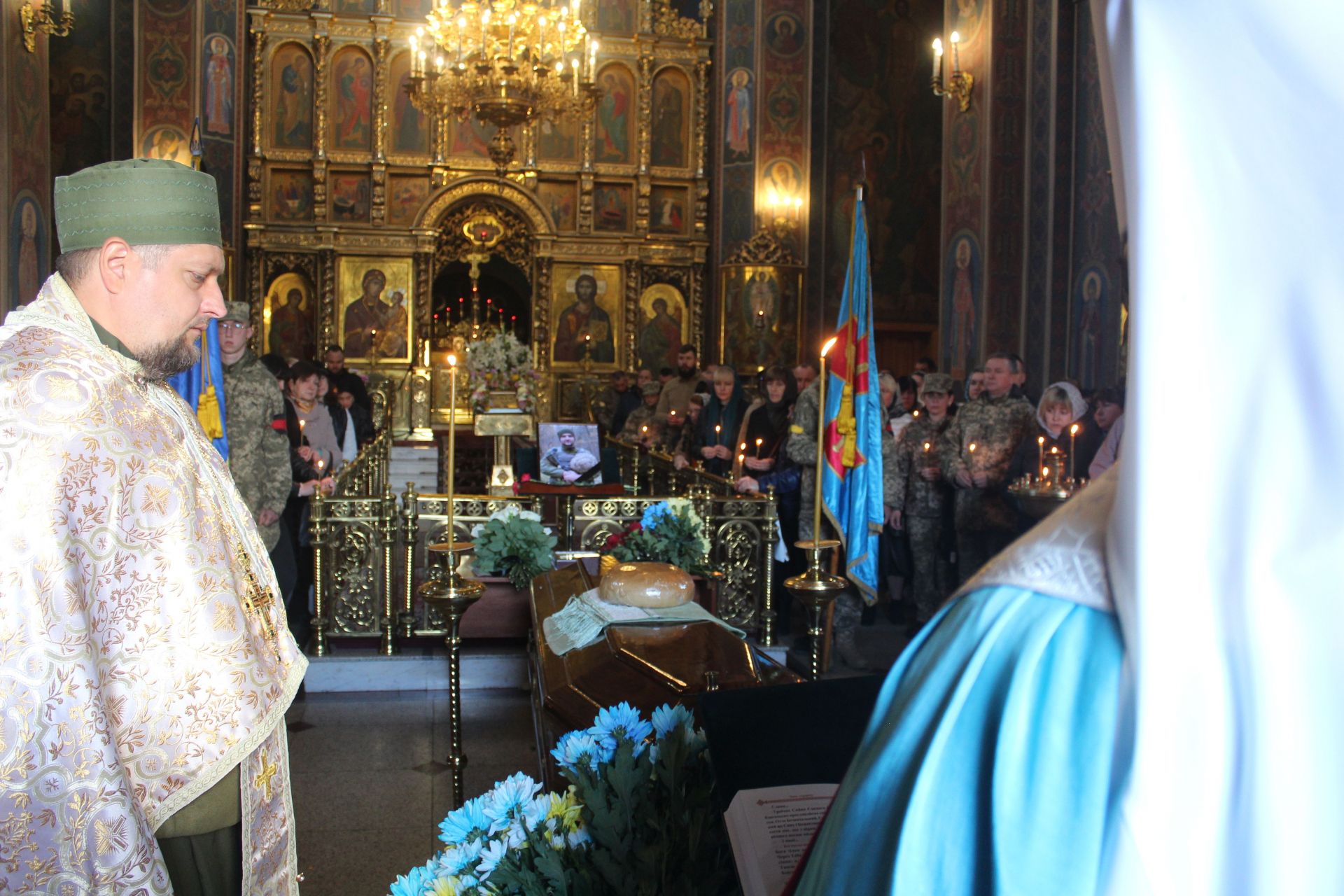 Тіло бійця було у закритій труні, на якій лежала хлібина. Однак офіцер все ж дивиться на всіх присутніх. Дивився, та усміхався з фотографії, на якій він у повному бойовому спорядженні та зі зброєю в руках. До останнього подиху боронив Україну від російських окупантів.