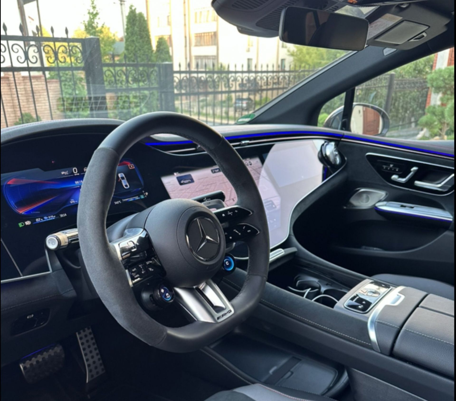 Автівка 2023 року. Автор оголошення пише, що це найпотужніша версія цієї моделі. Повна комплектація, ексклюзивний колір, топові диски AMG. Розгін до сотні за 3,2 секунди.