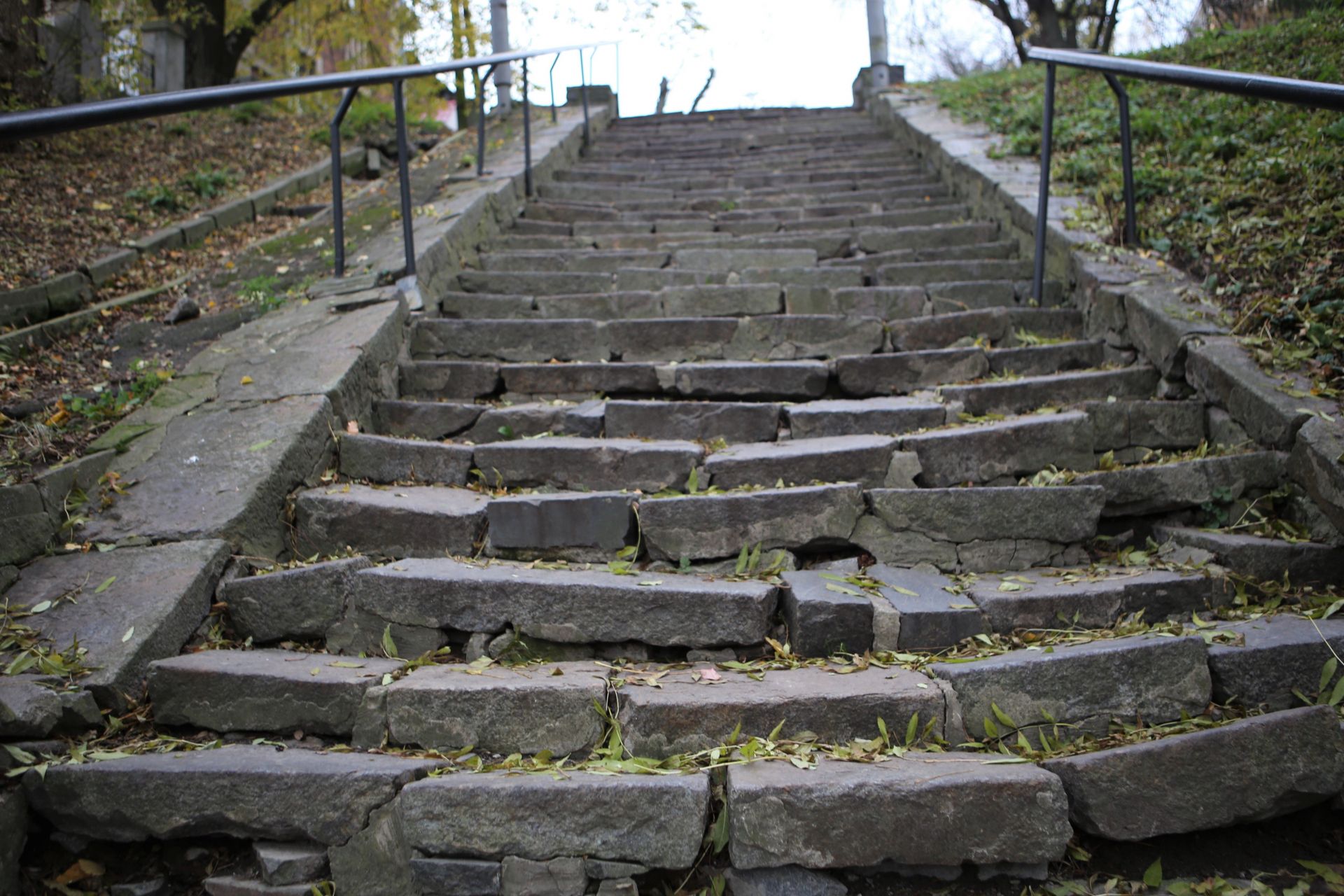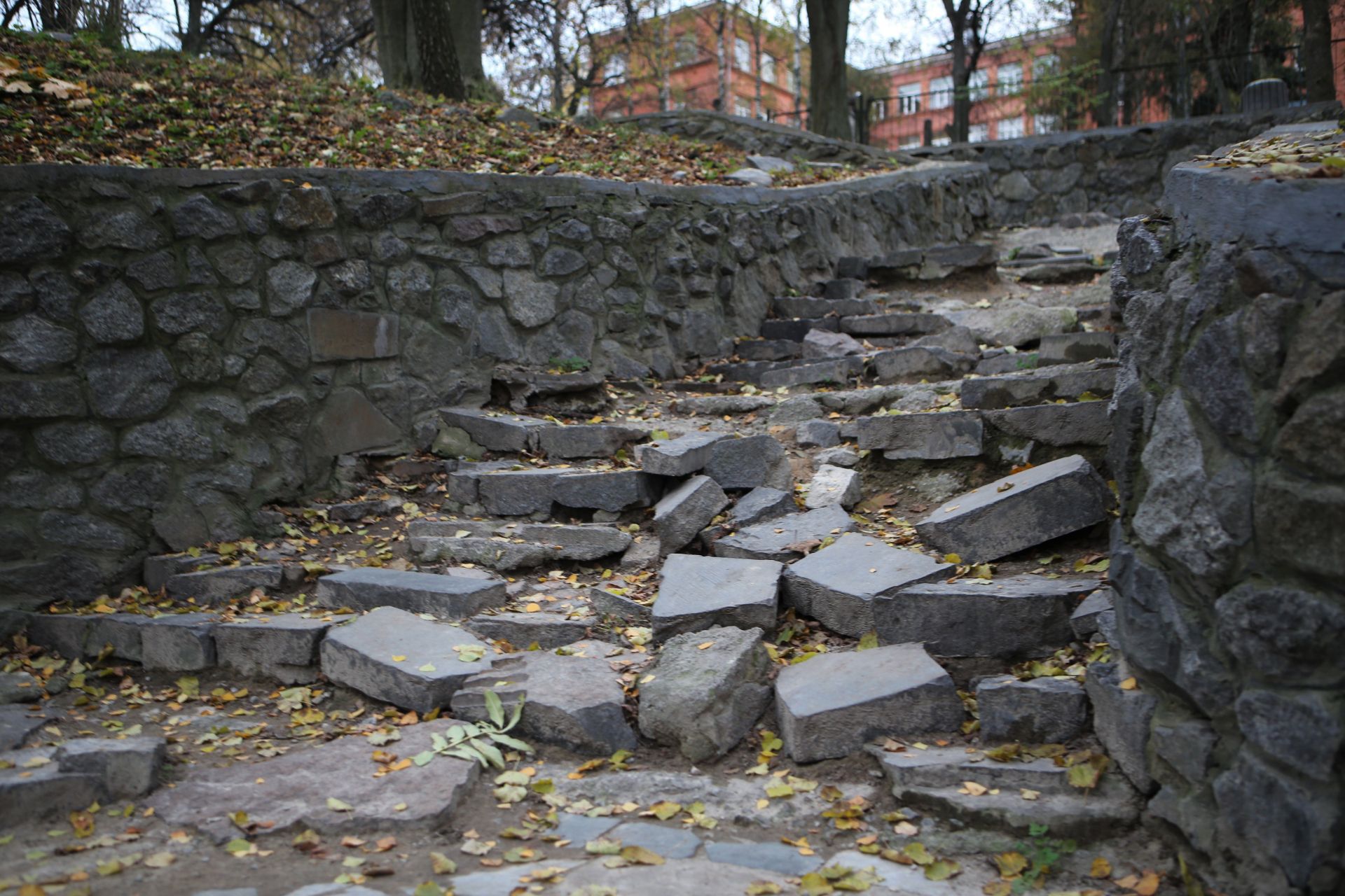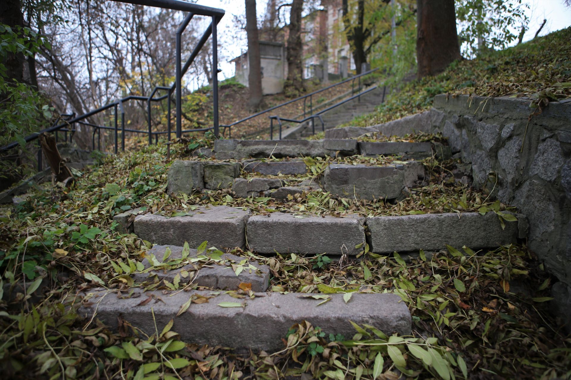Це безумовно одне з тих місць, де люблять гуляли закохані і куди вінничани обов’язково водять гостей з інших міст. Але позаяк локація вже багато років не бачила ремонту, на ній можна не лише насолодитися чимось богемним та романтичним, але й добряче забитись і навіть почервоніти від сорому перед своїми гостями. Зокрема, за розбиті сходи, за дуже розбиті сходи і за ті місця, де б мали бути сходи, хоча б розбиті. З плюсів — є нові перила.